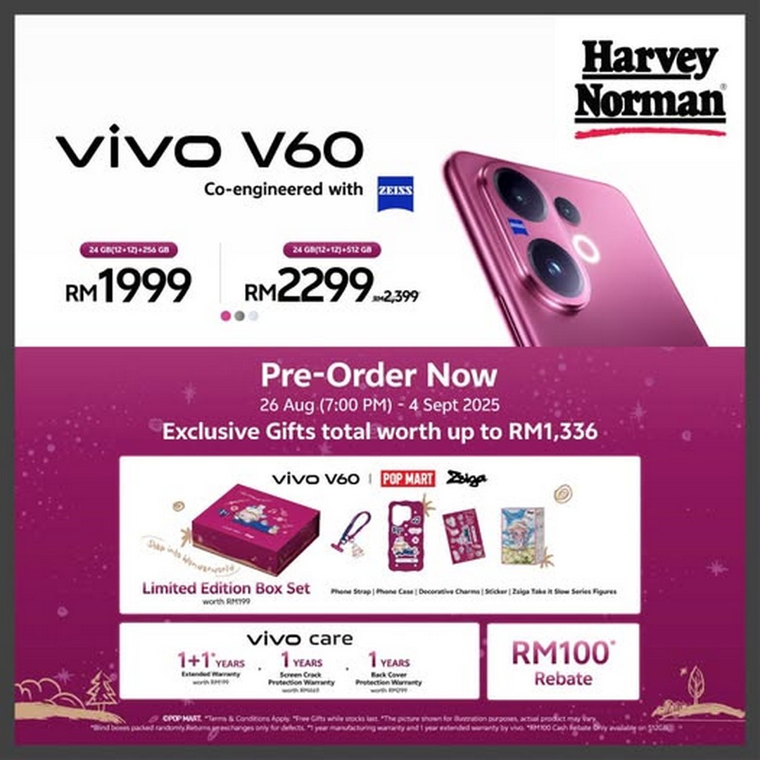 Those who want to be among the first to own the Vivo V60 while enjoying additional rewards should act quickly. Pre-ordering is straightforward — simply visit a Harvey Norman store near you or head to their official link provided below. With such an attractive offer, it is no surprise that units are expected to be snapped up fast.