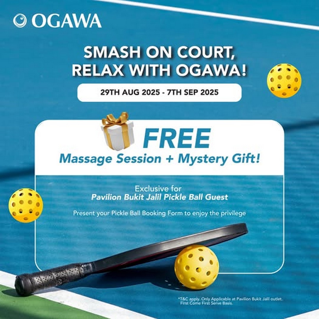 From 29 August to 7 September 2025, guests who have participated in pickleball activities at Pavilion Bukit Jalil can claim a free massage session at OGAWA Malaysia. This isn’t just any massage session—it’s a chance to experience the brand’s renowned wellness services that combine modern massage techniques with cutting-edge equipment designed to rejuvenate both body and mind. For anyone who has been rushing around during the Merdeka festivities, this promotion offers a welcome pause, a moment of self-care that is well-deserved.