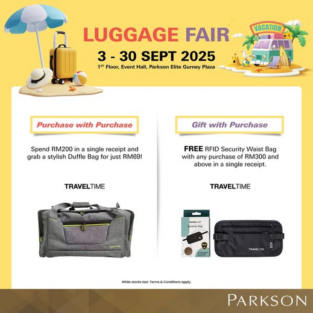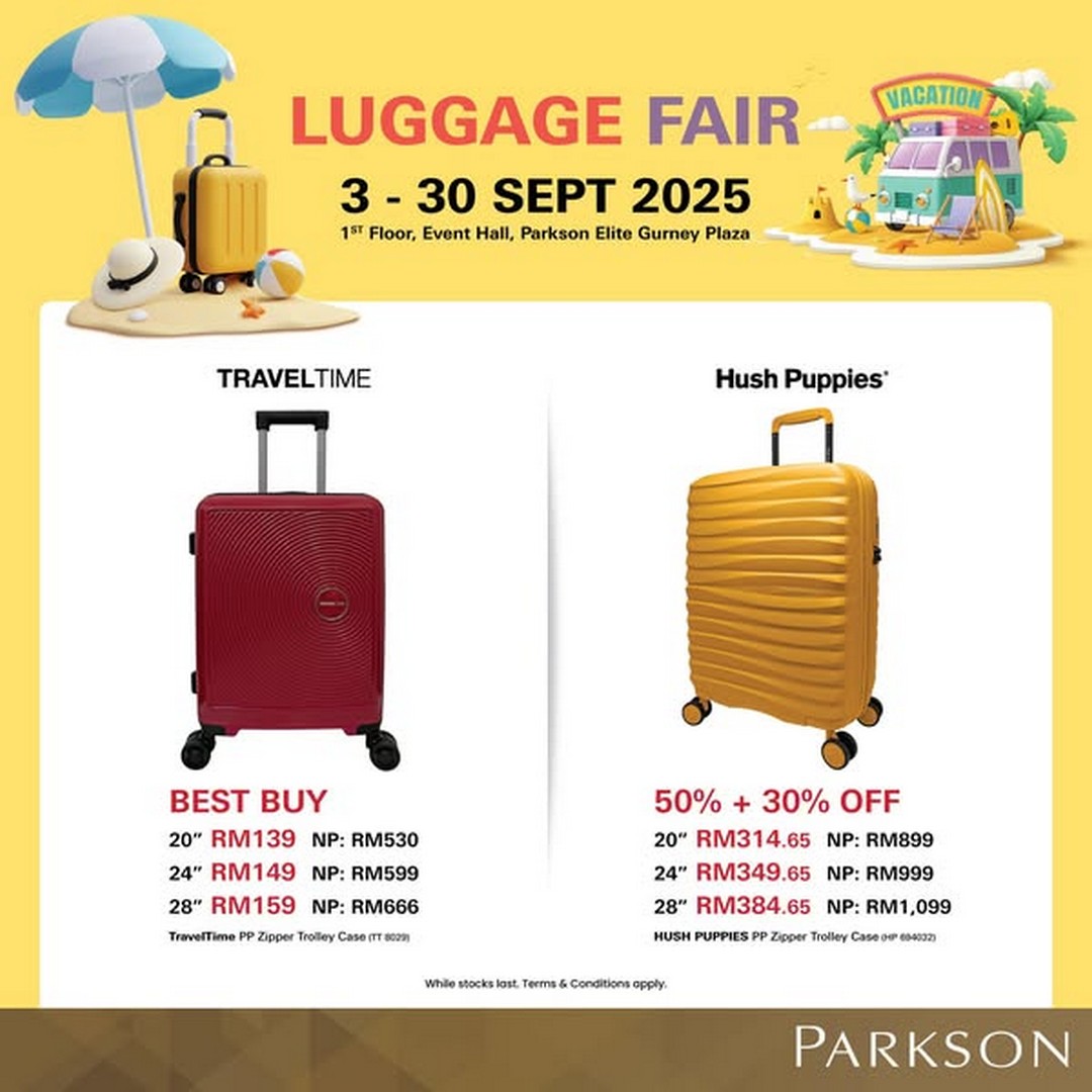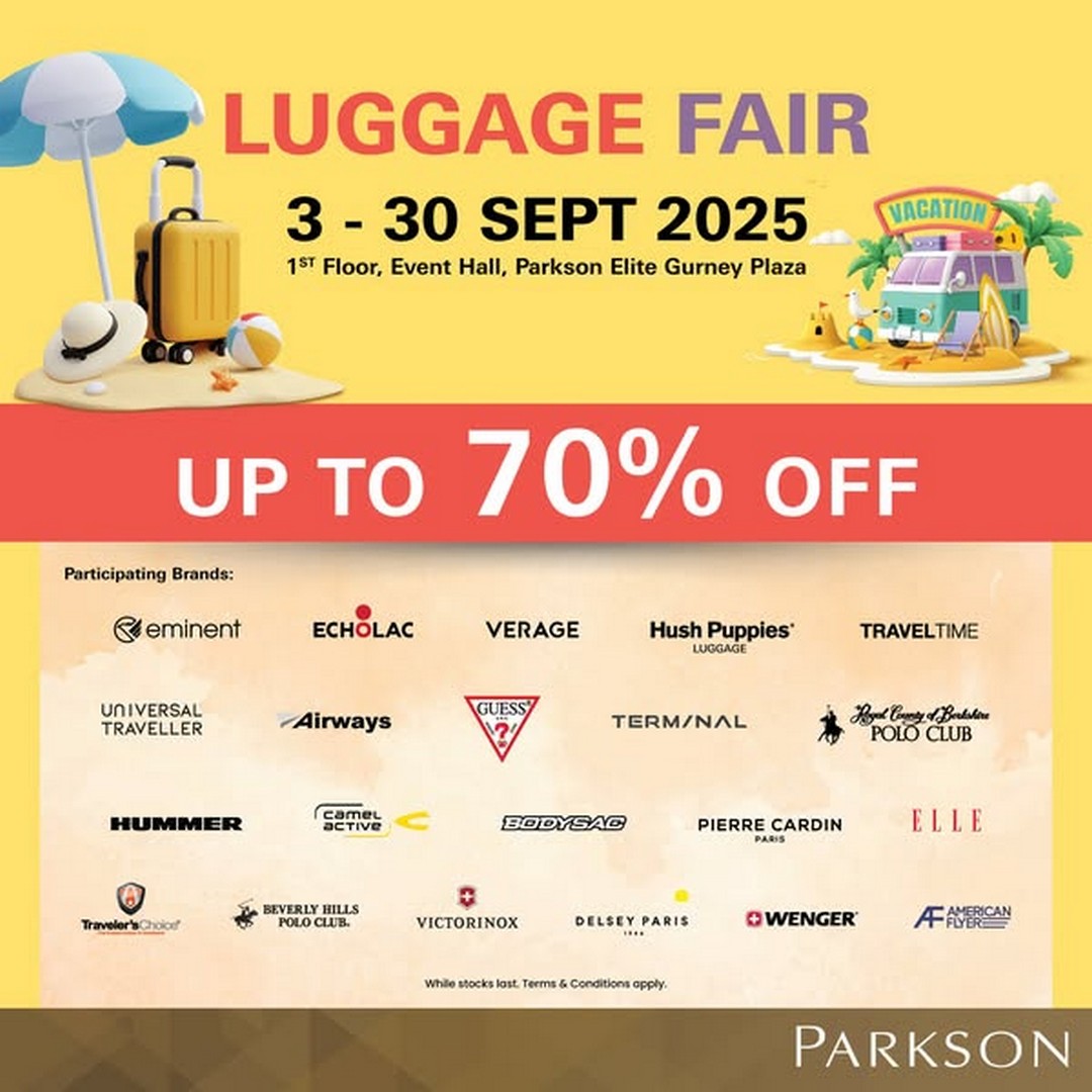 The venue for this event is Parkson Elite Gurney Plaza, a shopping destination that is already popular among Penangites and tourists alike. Located along Gurney Drive, the mall is known for its diverse mix of retail outlets, dining spots, and leisure facilities. So, even if your main aim is to shop for luggage, you can turn the trip into a full day out.