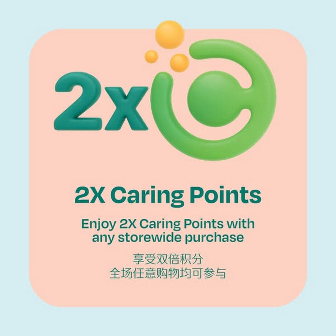 For regular CARiNG Pharmacy shoppers, double points alone can make a big difference. Imagine buying the same health products one normally would, but receiving twice the value back. That’s essentially boosting long-term savings while still taking care of health needs.