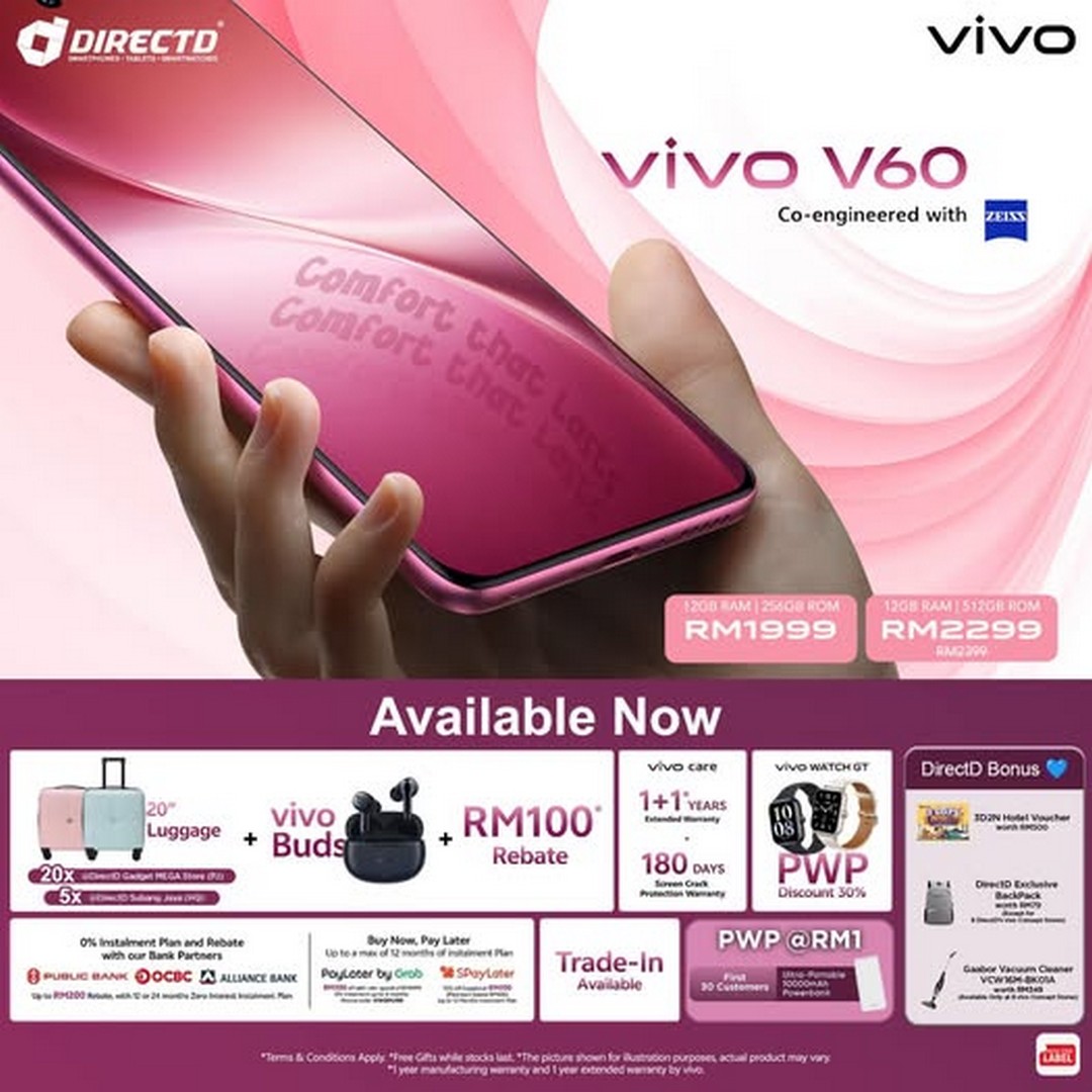Customers can order directly through the DirectD website at www.directd.com.my/vivo-v60 or visit their nearest DirectD outlet. A full list of stores can be found at DirectD Store Locator.