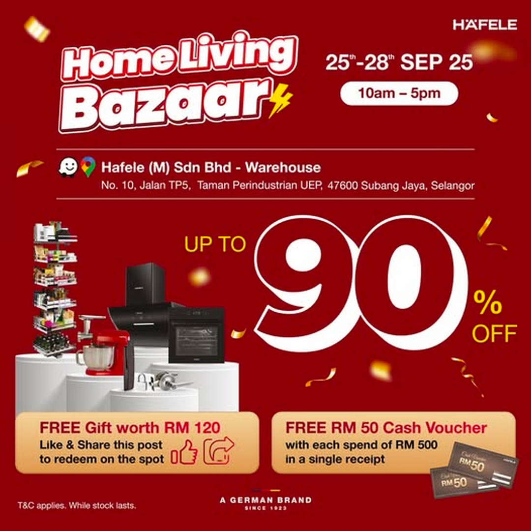 If you have been thinking about upgrading your home, whether it is enhancing storage solutions, installing smart digital locks, or picking up reliable home appliances, there is an opportunity that might just make you want to take action right away. The Häfele Home Living Bazaar is coming this 25 to 28 September 2025, and it is bringing with it deals that are almost too good to miss. With discounts of up to 90% across a wide variety of products, this event in Subang Jaya is set to attract homeowners, renovators, and bargain hunters alike.
