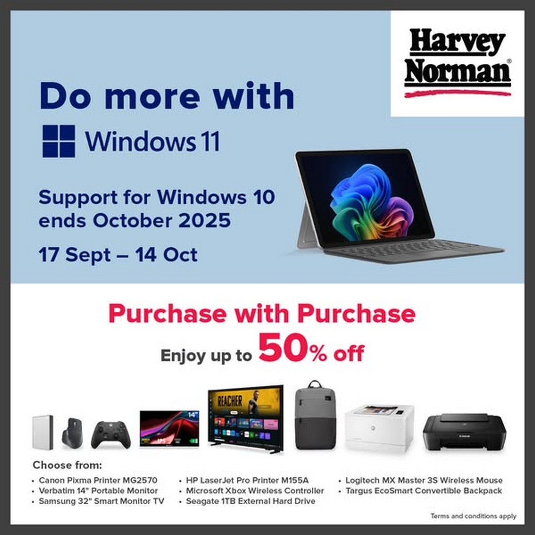 When it comes to technology, Malaysians are always on the lookout for the next great deal, and Harvey Norman Malaysia never disappoints when it comes to promotions worth grabbing. From 17 September to 14 October 2025, they are rolling out an attractive campaign for those who are planning to upgrade to Windows 11. What makes this event stand out is not just the upgrade itself, but the Purchase-with-Purchase deals of up to 50% off on a wide range of accessories and gadgets.