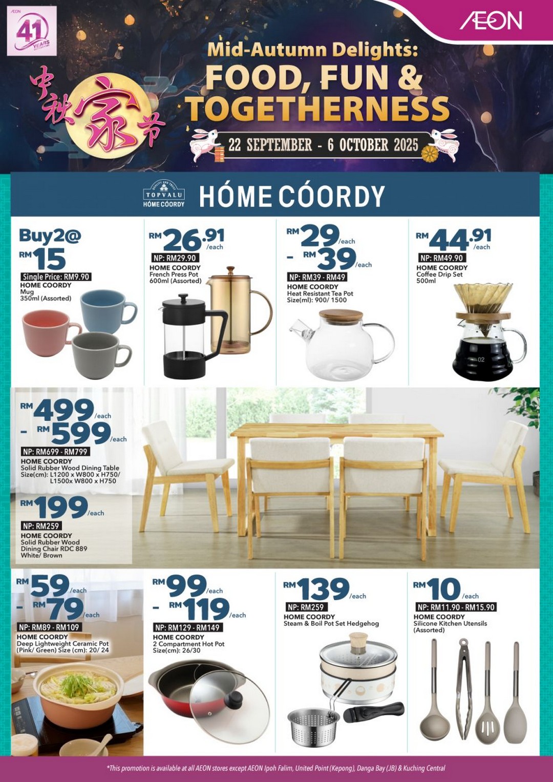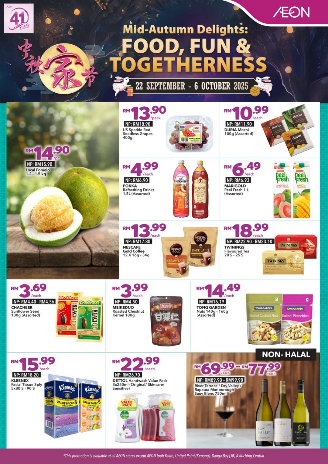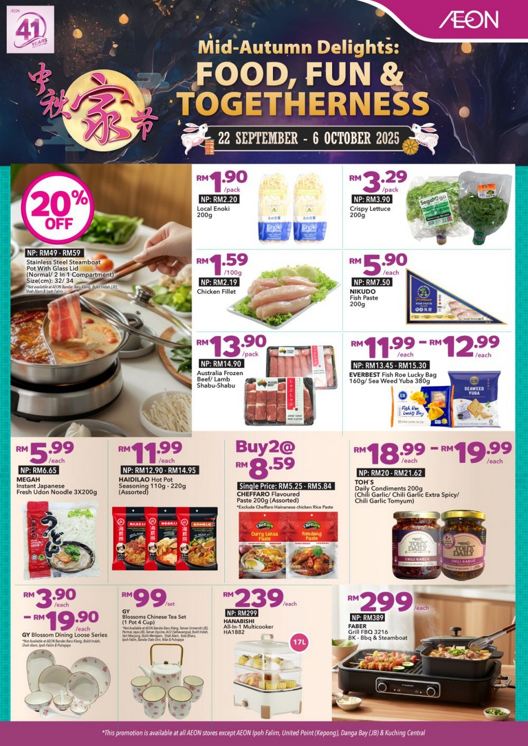 The AEON Mid-Autumn Promotion is available from 22 September to 6 October 2025 across AEON stores in Malaysia. However, it’s important to note that the promotion is not available at AEON Ipoh Falim, AEON United Point (Kepong), AEON Danga Bay (Johor Bahru), and AEON Kuching Central.