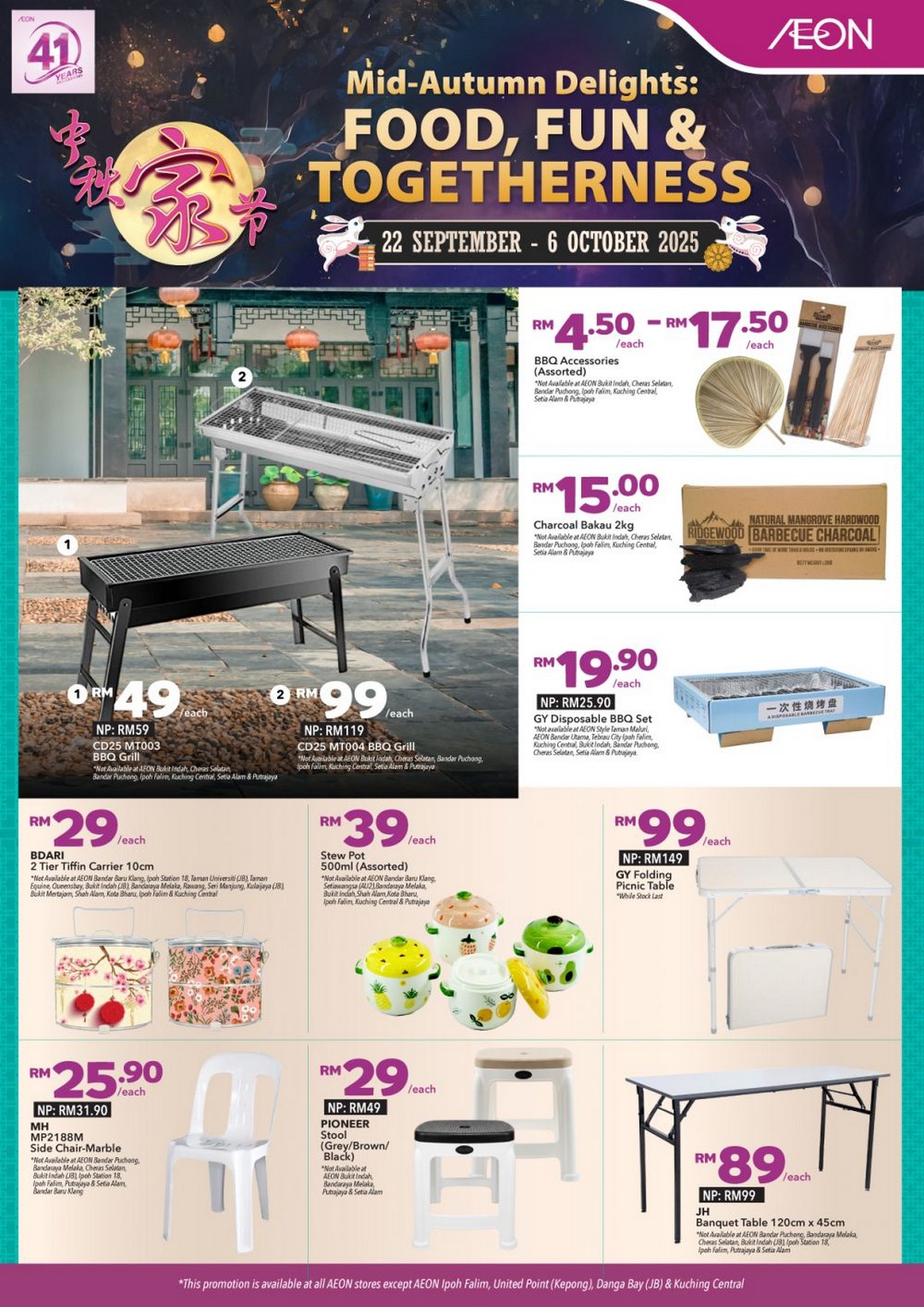 Think about what usually happens during Mid-Autumn — families gather to share food, enjoy barbecues or hotpots, indulge in mooncakes, and spend quality time together. This is exactly why AEON has tailored its offerings this season, ensuring shoppers can find everything from barbecue equipment and charcoal to steamboat pots, fresh produce, beverages, and even coffee-making sets. It’s a one-stop solution for festive preparation.