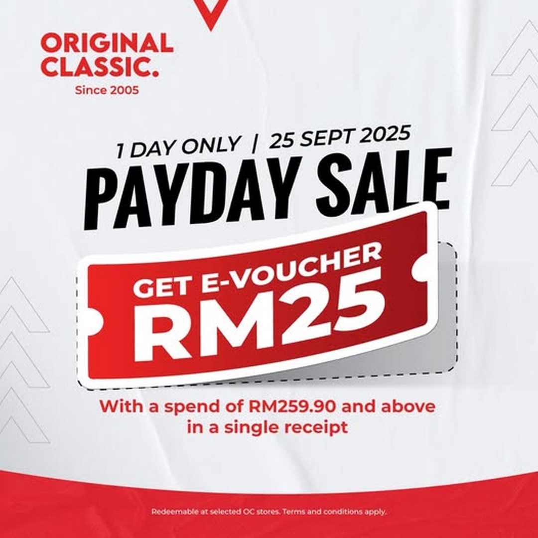 The highlight of this promotion is straightforward yet exciting: spend RM259.90 and above in a single receipt, and receive an RM25 e-voucher. It’s simple, easy to qualify for, and gives shoppers a chance to save even more on their next purchase. For anyone who is already planning a payday shopping trip, this offer adds an extra reason to choose Original Classic.
