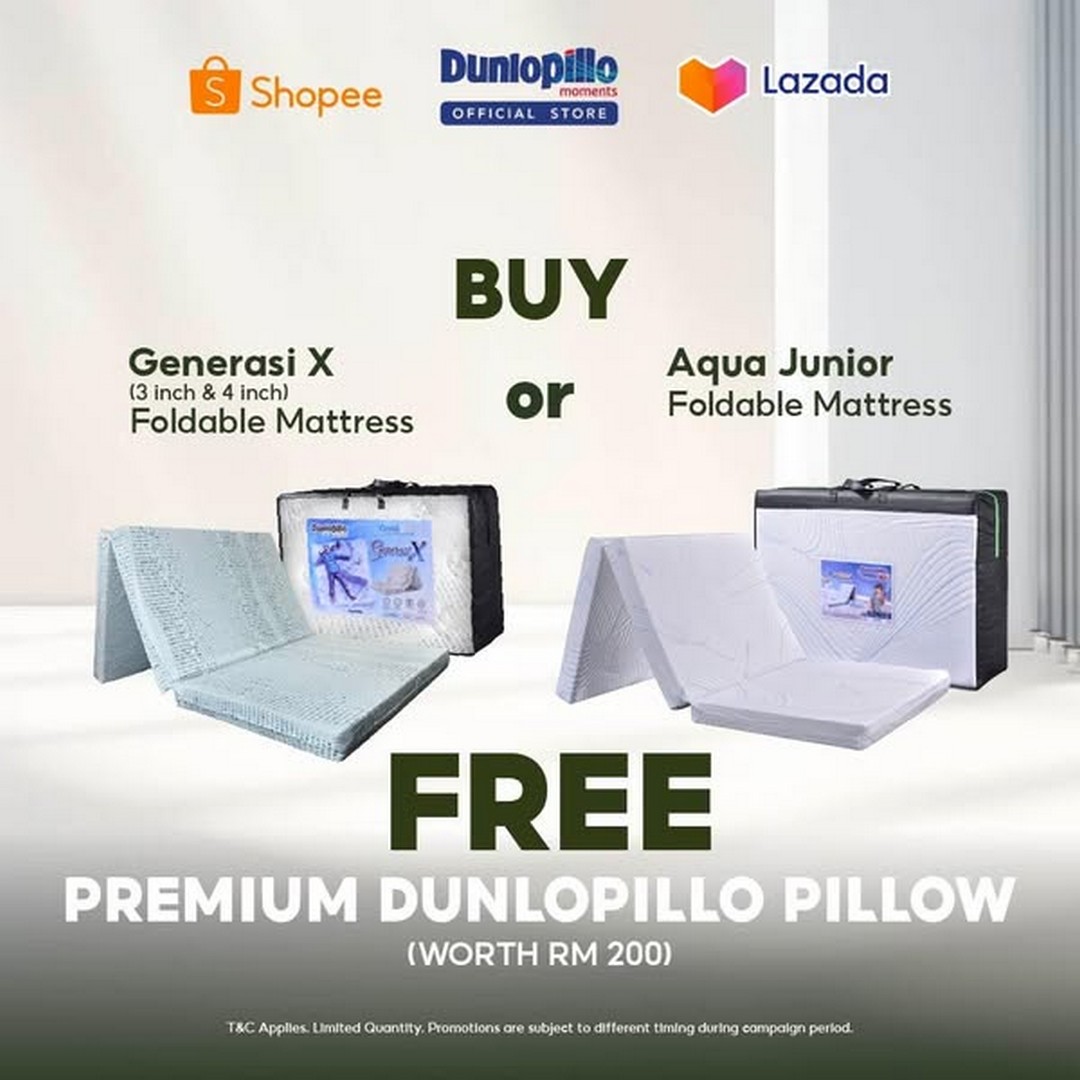 Look out for the selected items that come with a free Dunlopillo Premium Pillow.