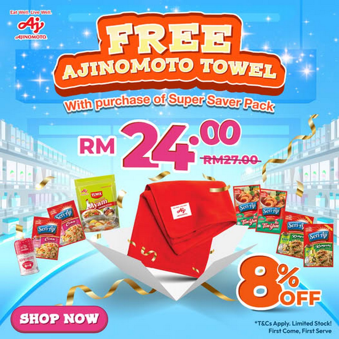 Now, for those who enjoy finding extra value in their shopping, Ajinomoto Malaysia has come up with a deal that is worth checking out. Starting from 1 October 2025, shoppers will get a FREE exclusive Ajinomoto towel with every purchase of a Super Saver Pack. This promotion not only gives more value to the money spent but also offers something practical and useful to take home.