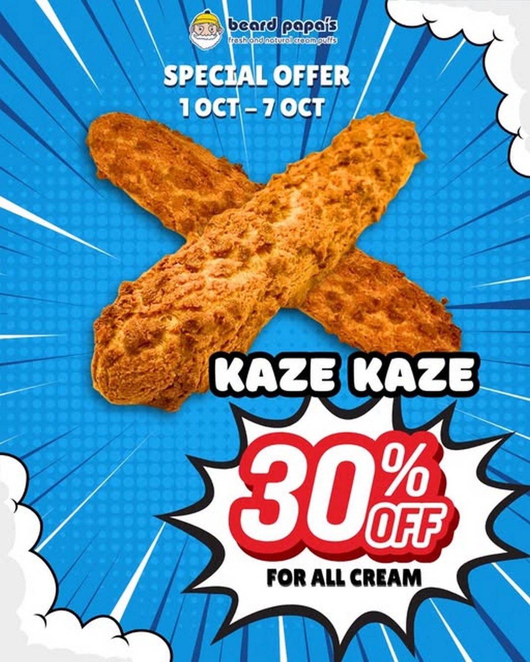If there is one thing Malaysians can never say no to, it is a good dessert deal, especially when it comes from a brand as well-loved as Beard Papa’s. Known for their signature cream puffs and creative treats, Beard Papa’s has been delighting sweet tooths across the country for years. This October, they are rolling out a promotion that dessert lovers simply cannot ignore. From 1–7 October 2025, Beard Papa’s Malaysia is offering a 30% discount on their Kaze Kaze – a treat that is as fun to eat as it is delicious.