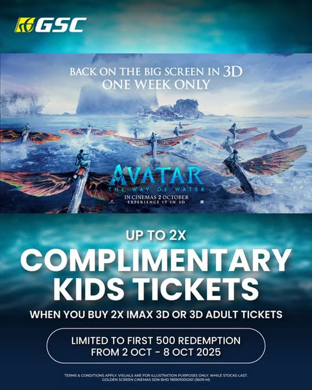 Cinema lovers in Malaysia are in for a treat this October, especially those who fell in love with James Cameron’s breathtaking world of Pandora. Golden Screen Cinemas (GSC) has rolled out an irresistible deal that blends family-friendly value with a chance to relive one of the most visually stunning films of recent years – Avatar: The Way of Water.