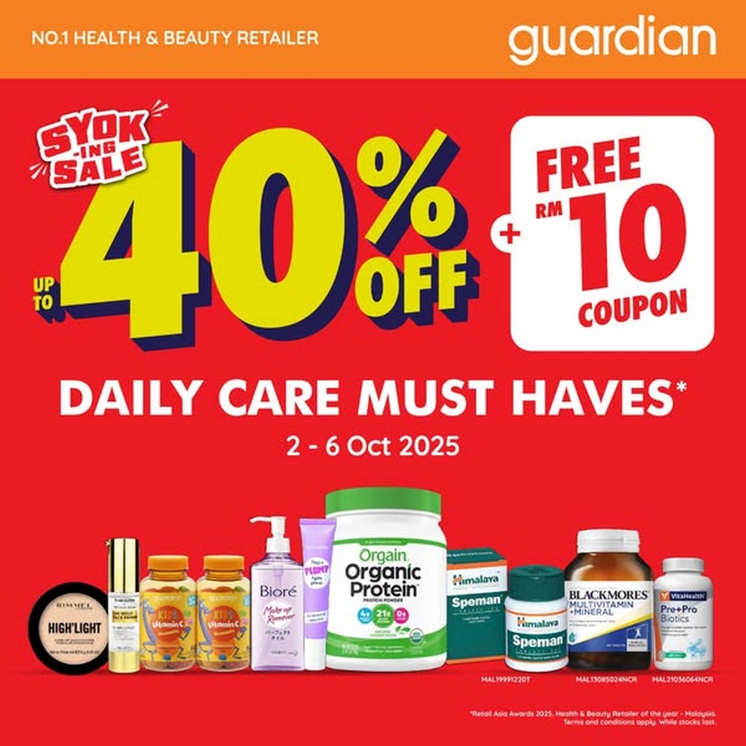 If there’s one place in Malaysia where savvy shoppers can score incredible deals on health and beauty essentials, it has to be Guardian Malaysia. From 2nd to 6th October 2025, Guardian Malaysia is rolling out an irresistible promotion on their daily care products, with discounts of up to 40% across cosmetics and health care items. This isn’t just any sale—it’s a chance for everyone to refresh their daily essentials without breaking the bank.