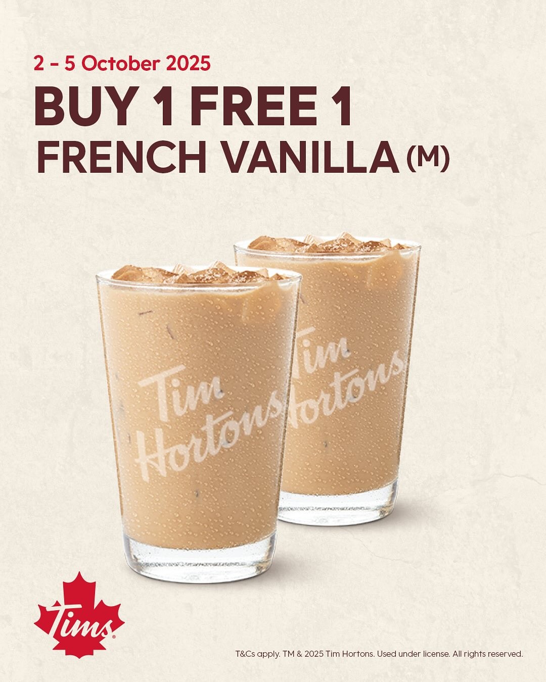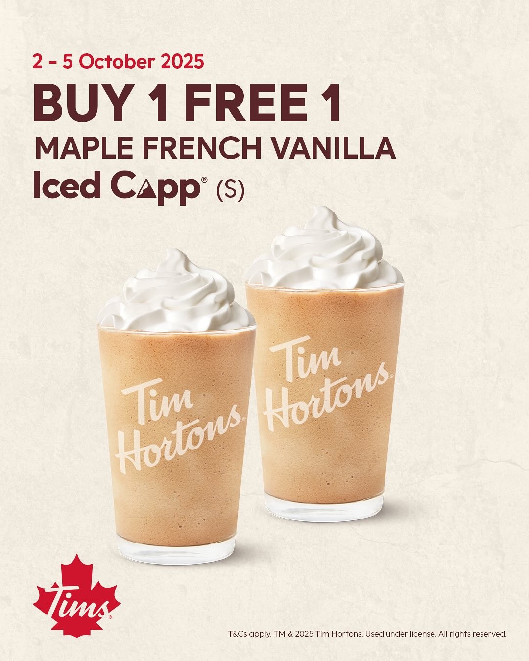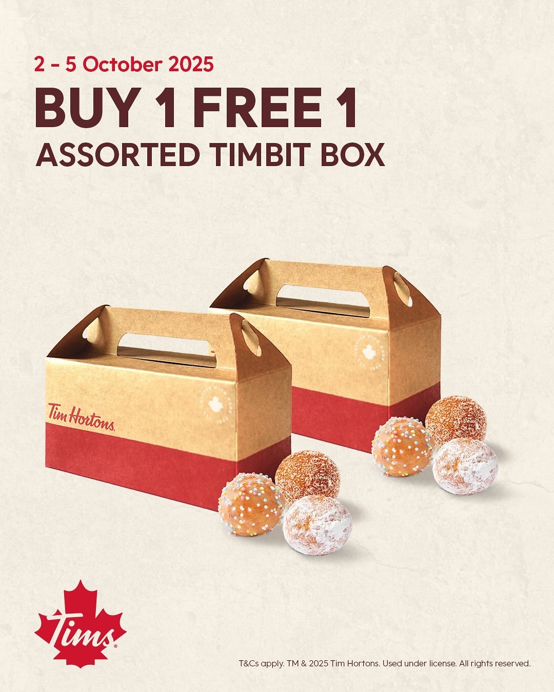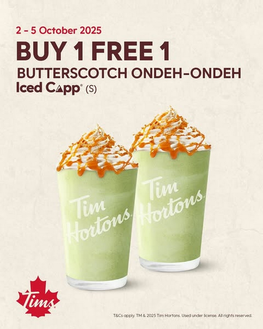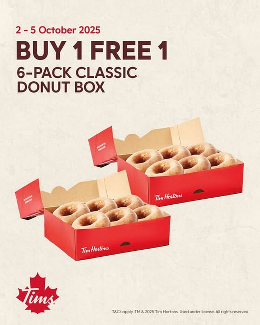 For those who have savoured Tim Hortons’ signature flavours before, this opening offers a chance to indulge in some of their most popular treats without paying full price. From 2 October onwards, visitors can enjoy a BUY 1 FREE 1 promotion on a selection of crowd favourites. This includes the 6-Pack Classic Donut Box, the Assorted Timbit Box, the creamy French Vanilla, and a range of iced beverages such as Teh Tarik Iced Capp, Butterscotch Ondeh Ondeh Iced Capp, and Maple French Vanilla Iced Capp. It’s a perfect excuse to either share with friends and family or treat yourself to an afternoon pick-me-up.