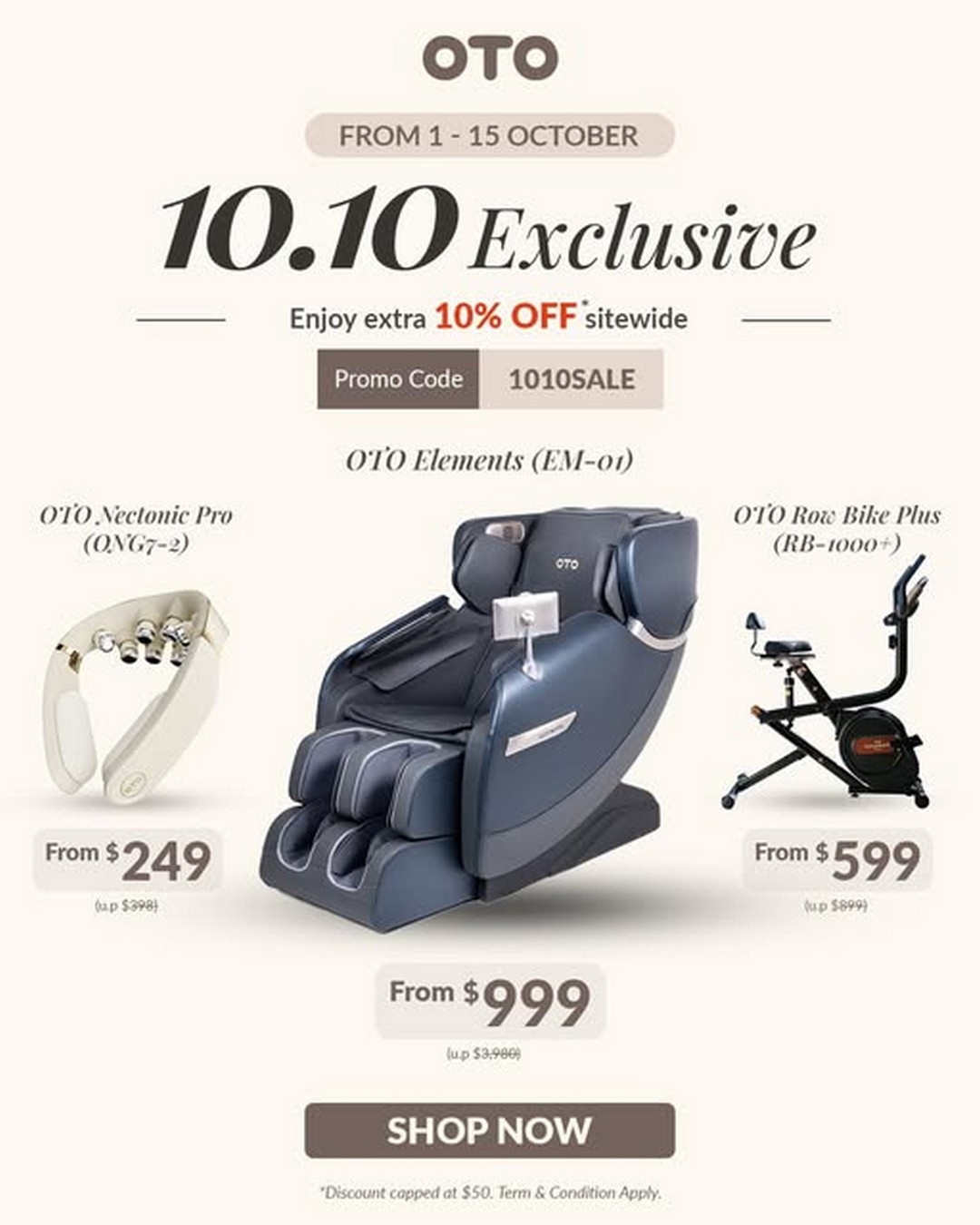If there has ever been a perfect time to prioritise self-care and wellness, it is now. OTO Singapore is making it easier than ever for them to elevate their daily wellness routines with a special promotion running from 1st to 15th October 2025. With the exclusive code ‘1010SALE’, them can enjoy a range of wellness products at attractive prices while discovering new ways to invest in their wellbeing.