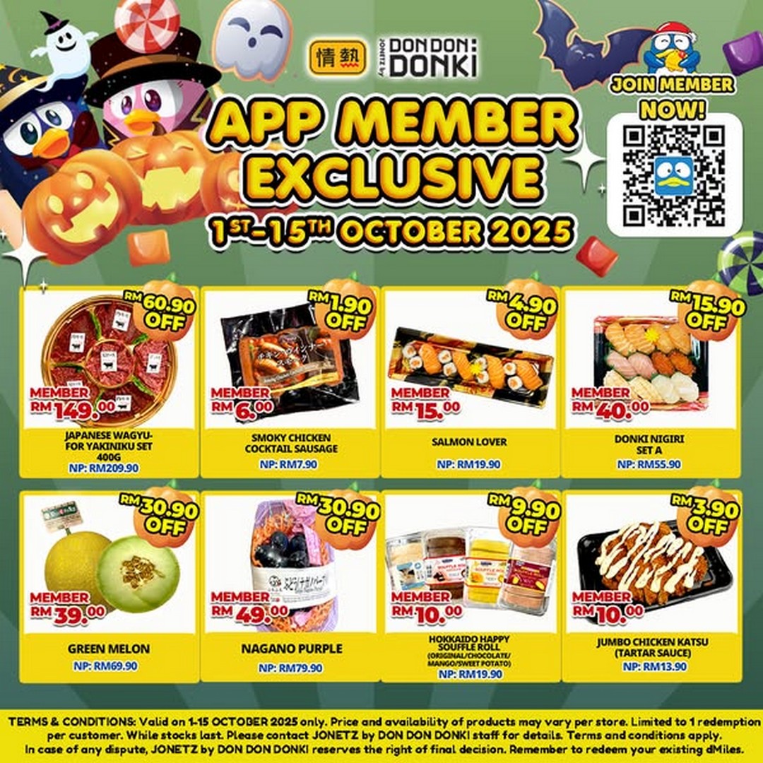 In short, DON DON DONKI Malaysia’s member-exclusive promotion from 1st to 15th October 2025 is a golden opportunity to enjoy a combination of savings, unique products, and a truly engaging shopping experience. From premium Japanese Wagyu to budget-friendly snacks, there is something for everyone. App members are rewarded not only with discounts but also with points, cash coupons, and exclusive offers that make each shopping trip even more exciting. The convenience of app tracking, along with flexible store hours at Lot 10 and Mid Valley, ensures they can plan their visit to suit their schedule.