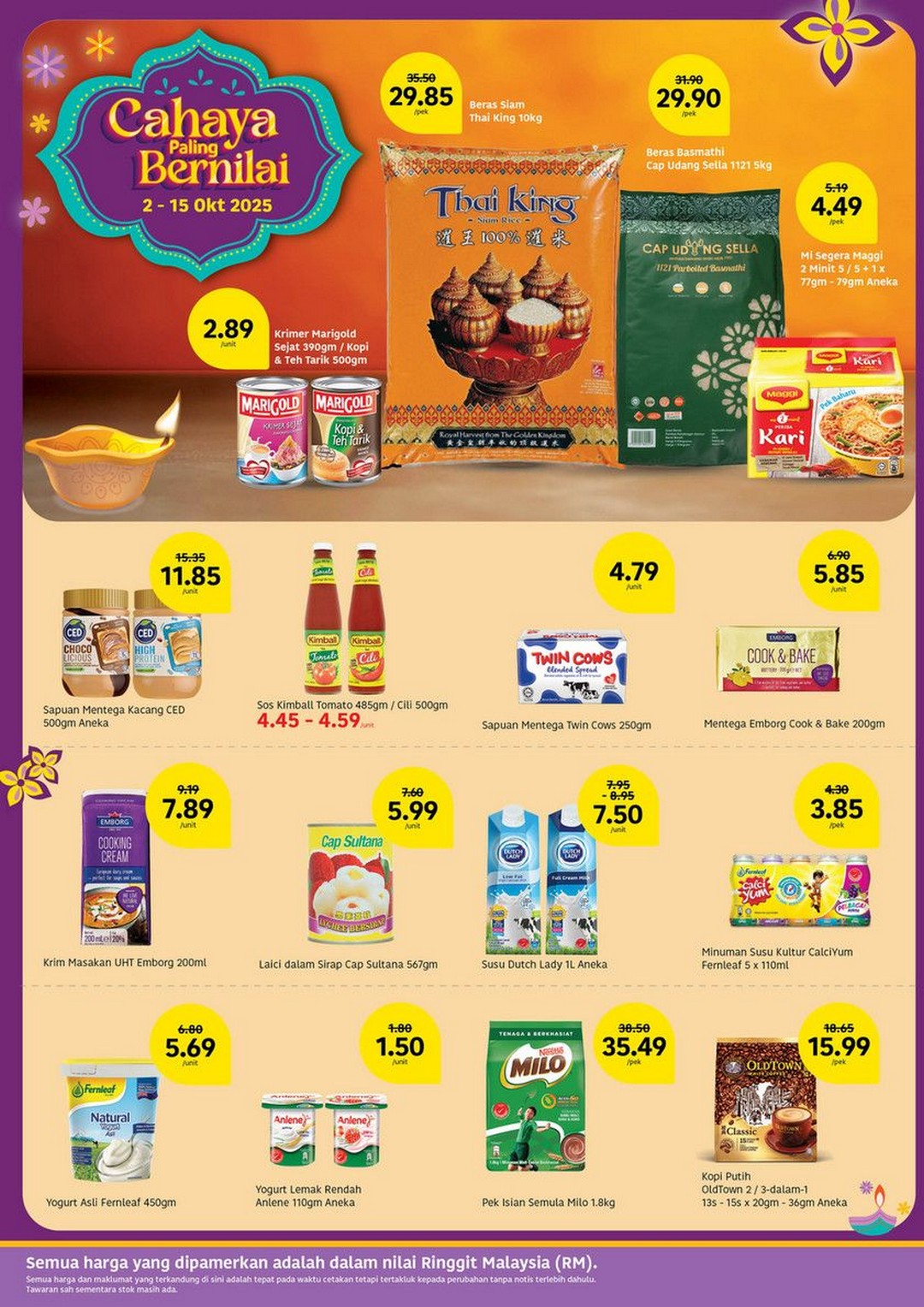 Dairy and beverages also come with enticing savings. Susu Farm Fresh 2L is RM13.90, Dutch Lady UHT Milk 1L is RM5.69, and Nestle EveryDay Milk Powder 1.5kg is available at RM43.90. These prices mean shoppers can stock up on family staples without worrying about costs adding up.