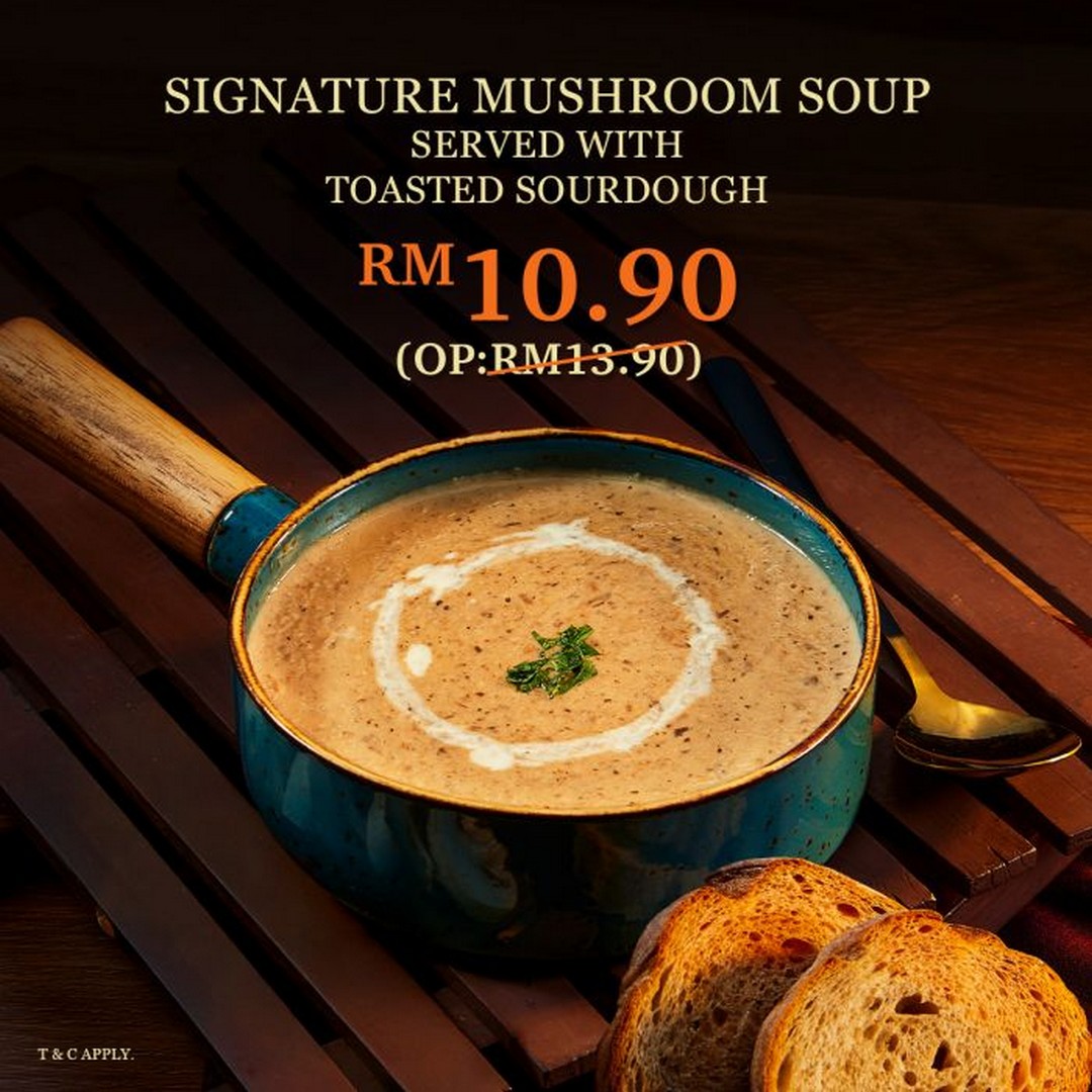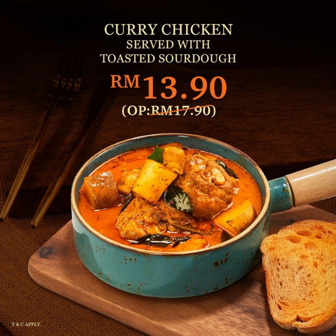 Soup lovers are not left out either. The Signature Mushroom Soup with Toasted Sourdough is available at RM10.90 (originally RM13.90). Creamy, comforting, and paired with perfectly toasted sourdough, this combination delivers warmth and flavour in every bite. For those craving a more substantial meal, the Curry Chicken with Toasted Sourdough, priced at RM13.90 (originally RM17.90), is a rich and satisfying option.