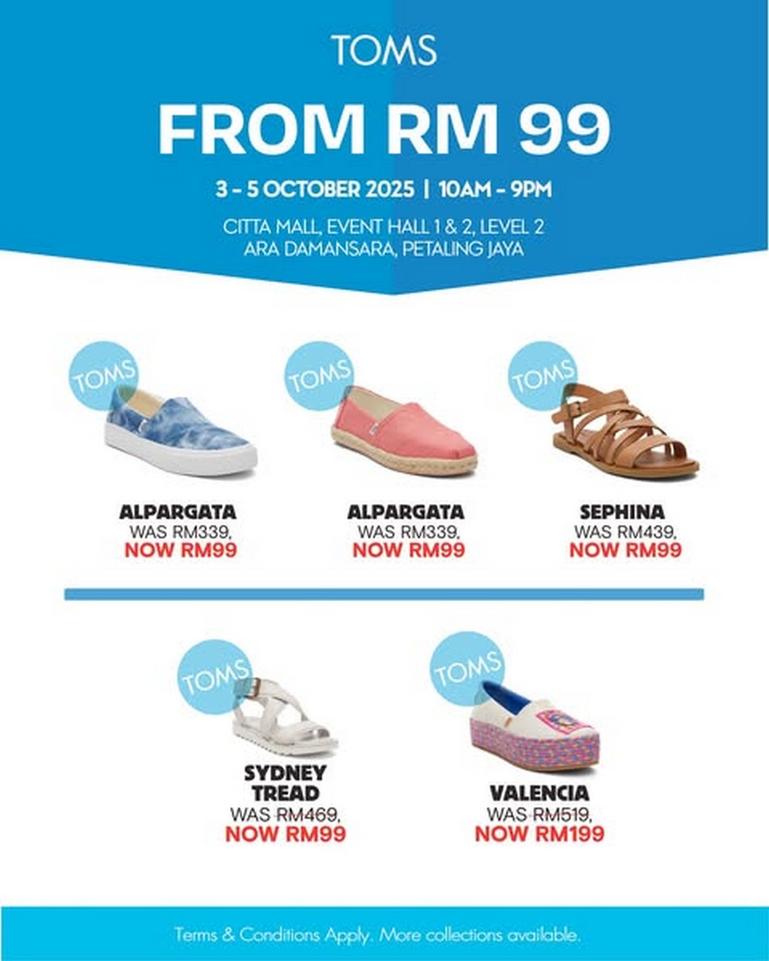 Footwear fans are not left out either. TOMS is making it possible to grab iconic shoes at unbelievable prices, starting from just RM99. Popular models such as the Alpargata and Sephina are now RM99 each, while the Valencia is reduced to RM199 from RM519. Known for their casual yet classic designs, TOMS shoes are comfortable, durable, and perfect for everyday wear, making this sale a prime chance to pick up multiple pairs without breaking the bank.