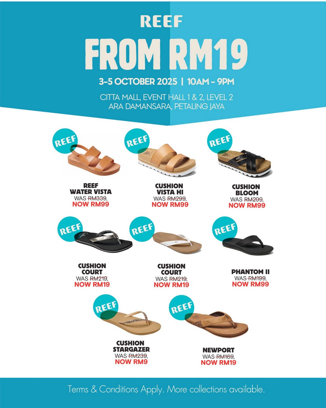 For those who love sandals and casual summer footwear, REEF has something exciting. Prices start as low as RM19 for selected items. Styles like the Water Vista, previously RM339, are now only RM99. From the Cushion Vista Hi to the Phantom II, REEF provides functional yet stylish sandals suitable for beach trips, casual strolls, or outdoor adventures. This is the ideal time to grab a pair—or two—before the rainy season sets in, ensuring comfort and style on a budget.