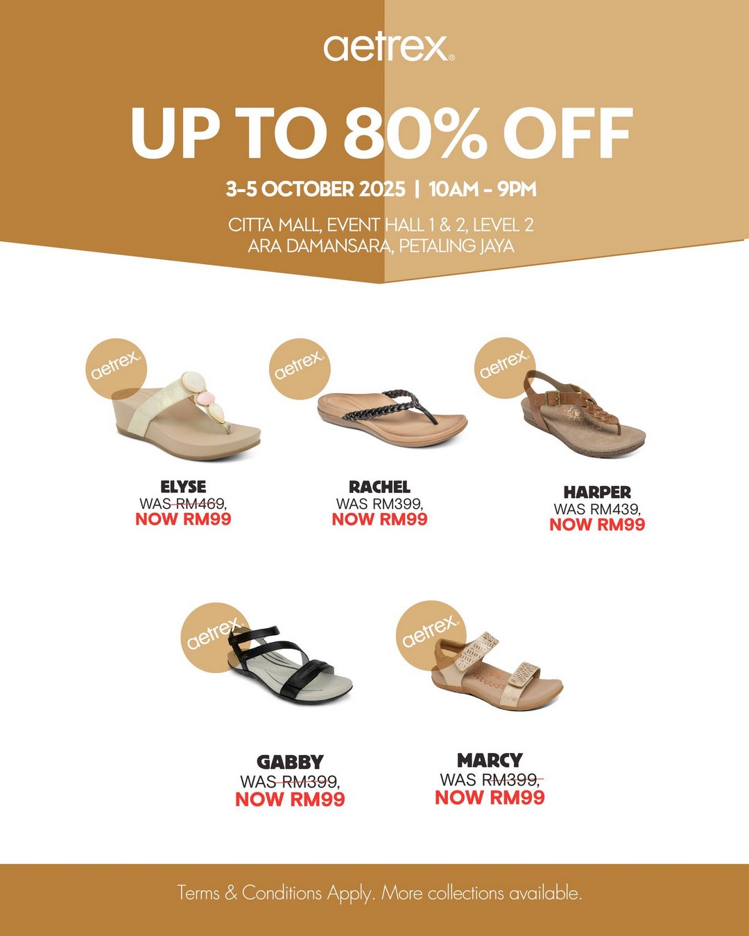 Aetrex is also part of the clearance event, offering up to 80% off on a variety of footwear. Popular models including Elyse, Rachel, Harper, and Gabby are all priced at just RM99, down from their original range of RM399-RM469. Known for their orthotic-friendly designs and excellent foot support, Aetrex shoes are not only stylish but also beneficial for those seeking comfort without compromising on aesthetics. Shoppers can walk away with shoes that support them literally and figuratively.