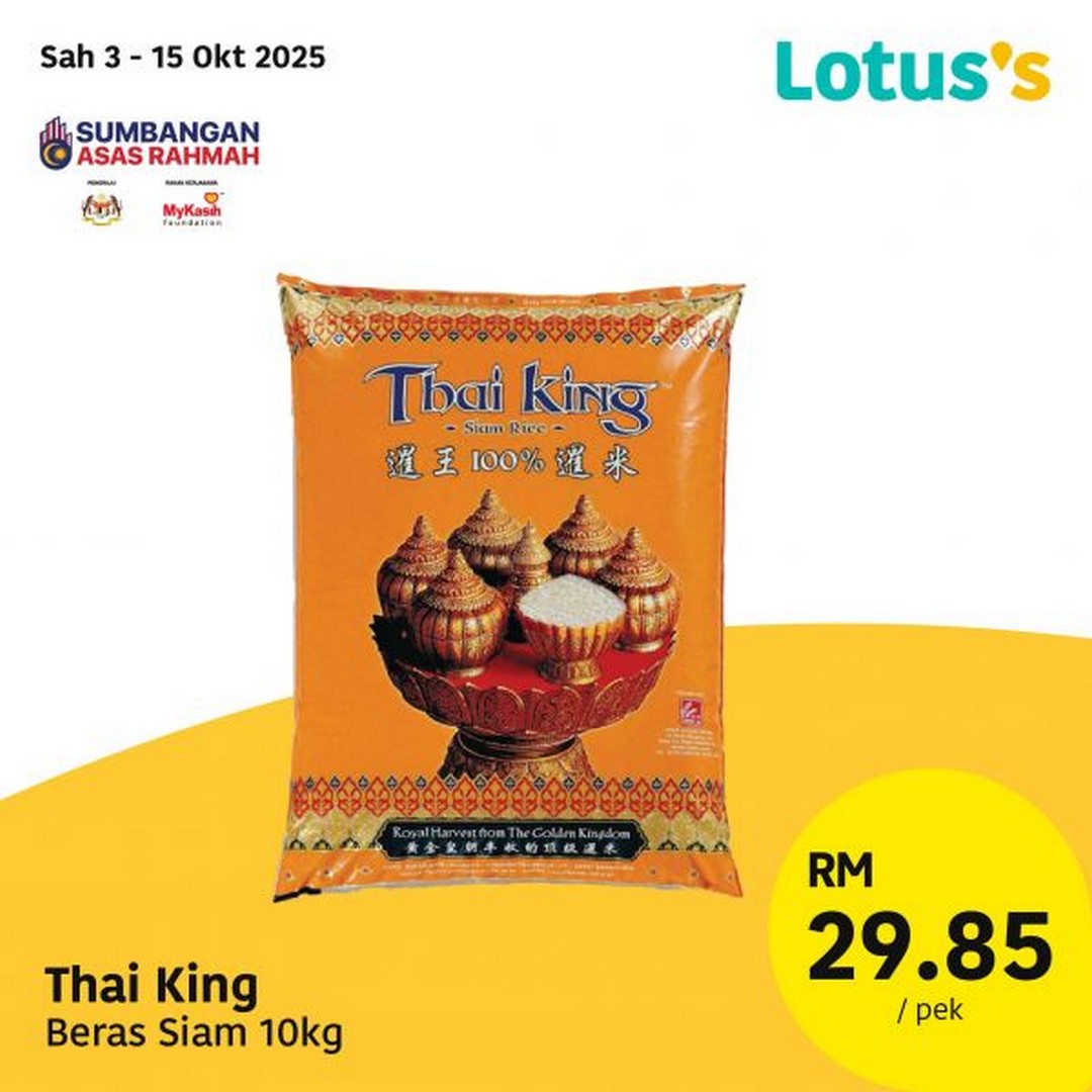 3 – 15 October 2025: Thai King Beras Siam 10kg – RM29.85/pack – Lotus’s Malaysia