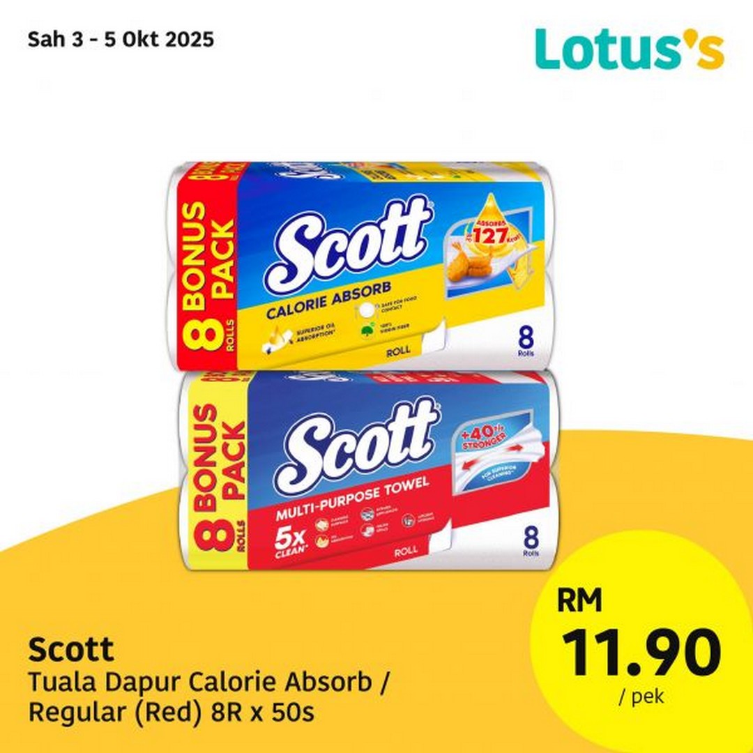 3 – 5 October 2025: Scott Kitchen Towels 8 rolls – RM11.90/pack – Lotus’s Malaysia