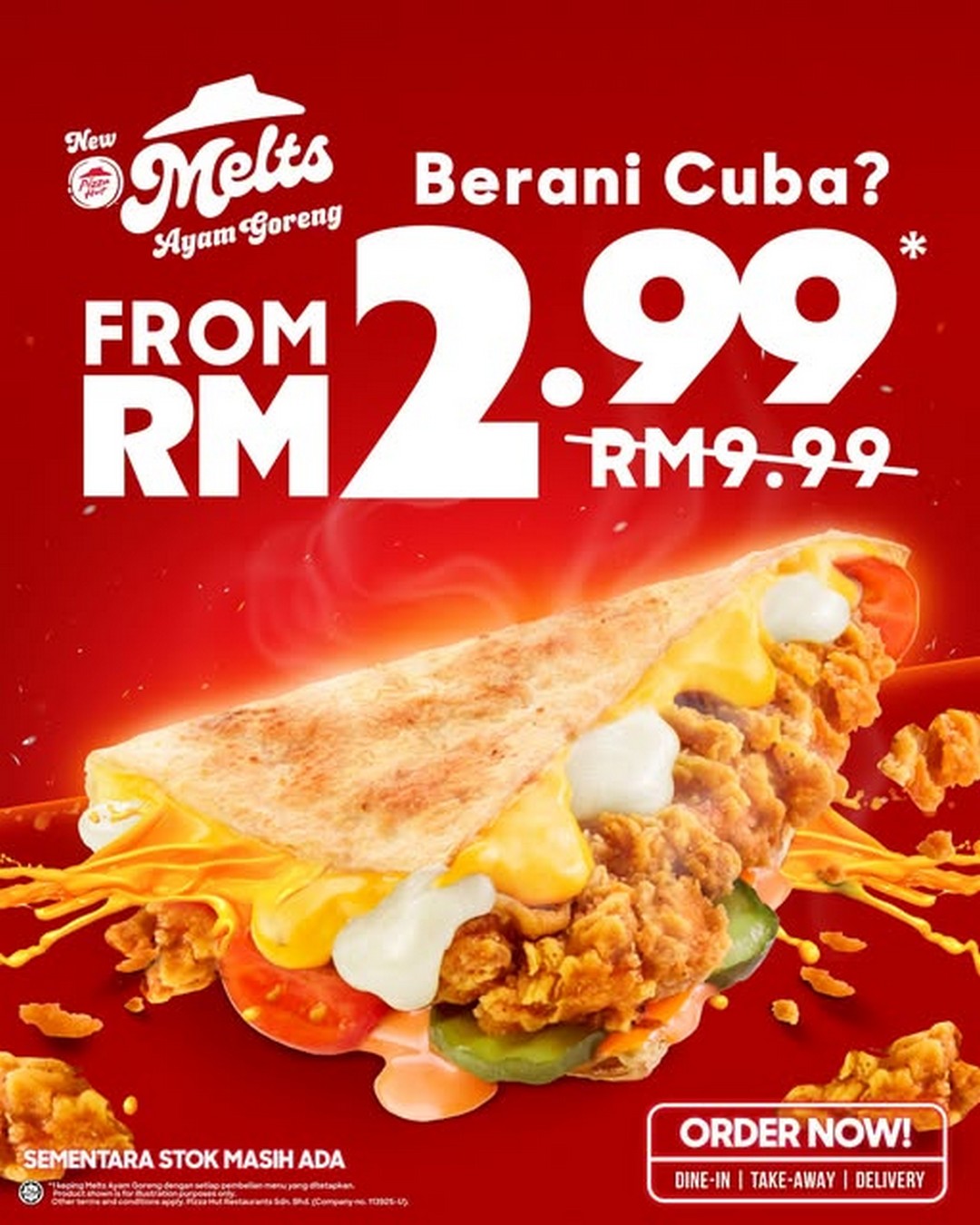 In summary, the Pizza Hut Melts Ayam Goreng promotion is much more than just a discounted snack. It’s a chance to enjoy quality food at an incredibly affordable price, experience a familiar brand in a new way, and indulge in a moment of pure culinary enjoyment. With its launch from 3 October 2025 onwards, it’s the perfect opportunity for anyone looking for an easy, satisfying, and budget-friendly snack option. Don’t let this deal slip away—they should head to their nearest Pizza Hut and grab it while it lasts!