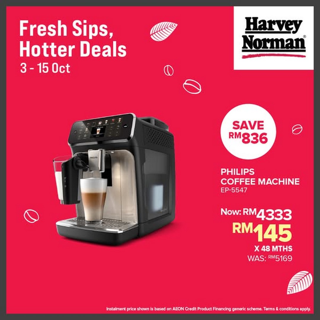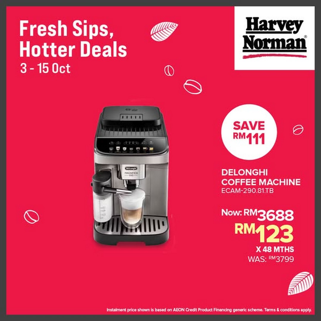 From 3rd to 15th October 2025, coffee lovers across Malaysia have a fantastic opportunity to explore a wide range of coffee machines at Harvey Norman. The sale offers up to 30% off, making it an ideal time to invest in a new machine or upgrade an old one. Whether shopping in-store or online, they can enjoy the convenience, style, and quality of café-standard coffee from the comfort of home.