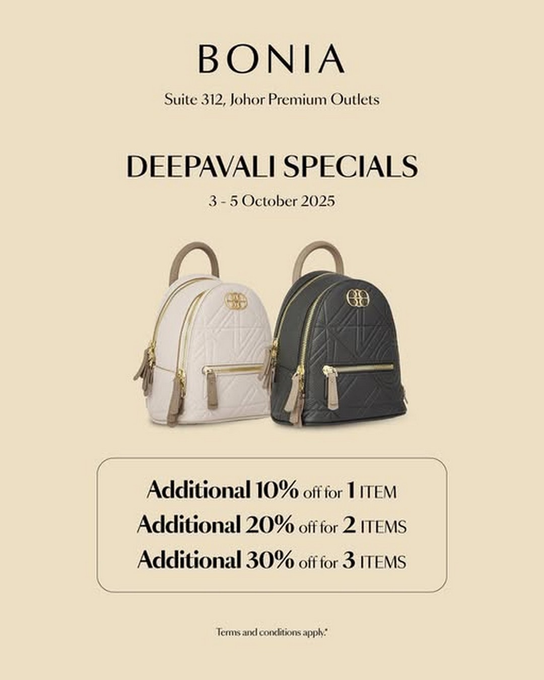 For those who appreciate quality leather goods and stylish fashion accessories, Bonia is rolling out a special promotion that is hard to resist. From 3 to 5 October 2025, shoppers visiting Johor Premium Outlets can enjoy a tiered discount offer on selected Bonia items, giving them the perfect opportunity to upgrade their wardrobe or grab gifts ahead of the festive season.