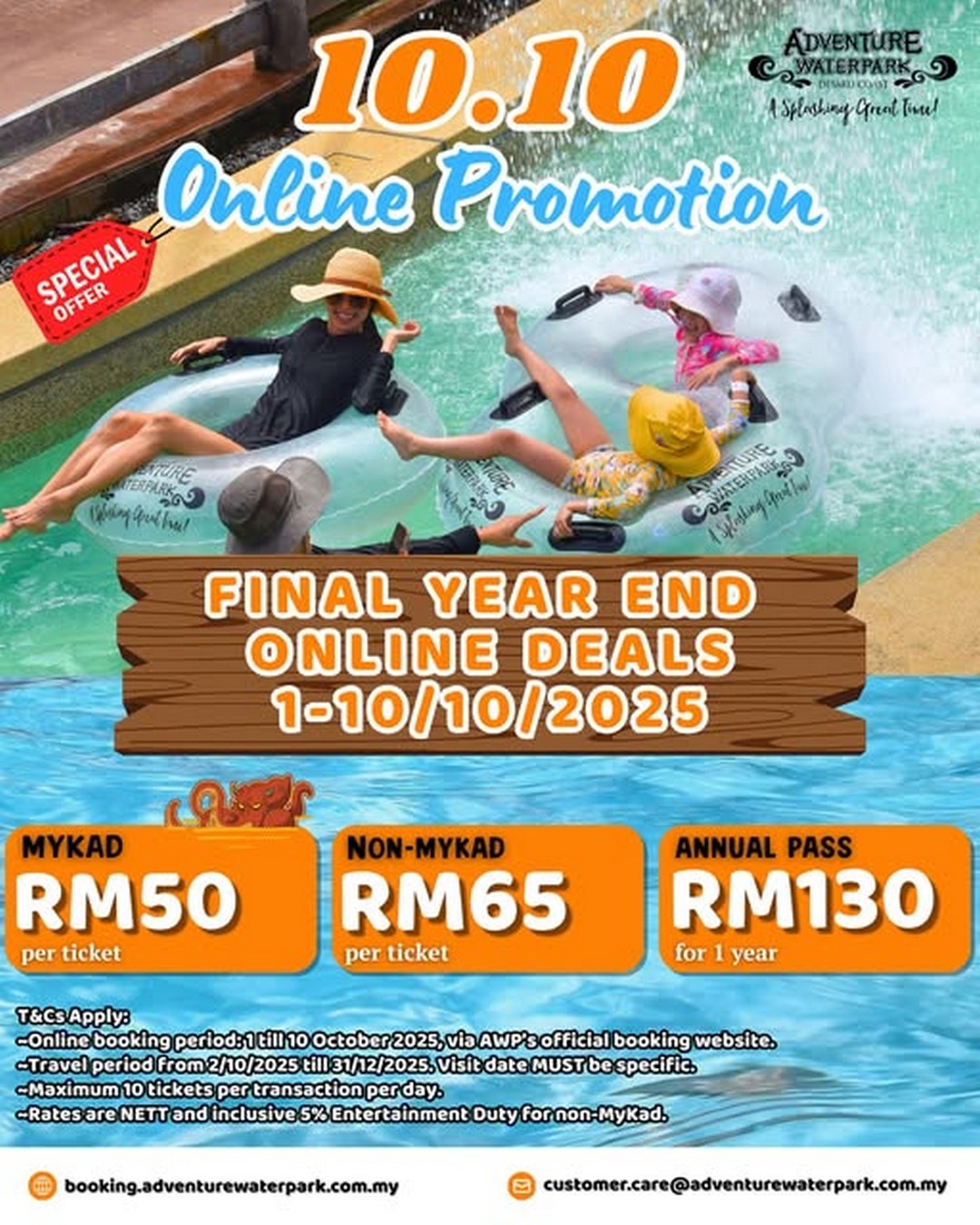 To make the most of this special offer, simply head to the official booking link: https://booking.adventurewaterpark.com.my/attraction/adventure-waterpark-desaru-coast-s-10-10-online-promotion-67919.