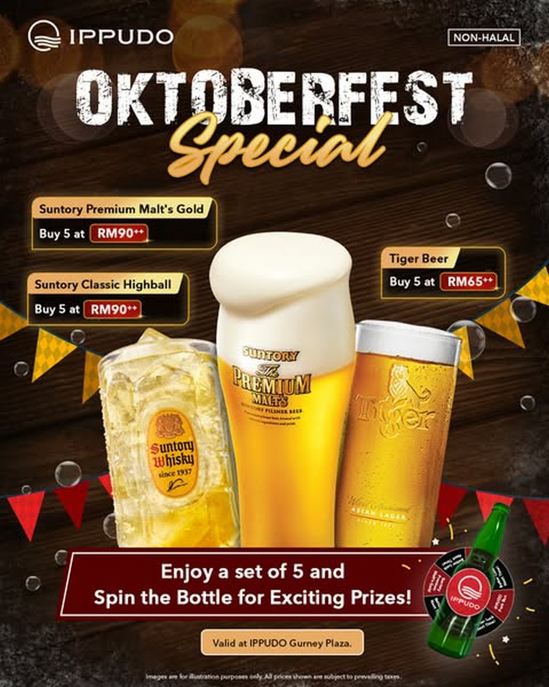 Starting from 6 October 2025, guests can enjoy the Oktoberfest Specials across multiple IPPUDO outlets in Malaysia. The promotion is designed around a simple yet fun concept: order any set of five drinks and get a chance to Spin the Bottle. It’s the perfect mix of social dining, festive spirit, and a dash of friendly competition.