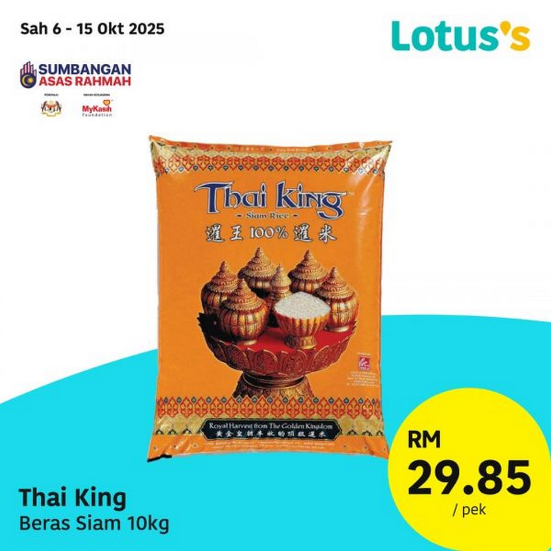 Thai King Beras Siam 10kg – RM29.85/pack, 6–15 October 2025, Lotus’s Malaysia