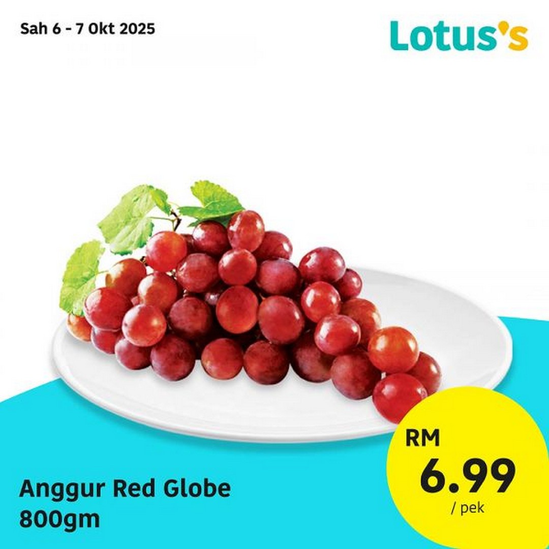 Anggur Red Globe 800g – RM6.99/pack, 6–7 October 2025, Lotus’s Malaysia