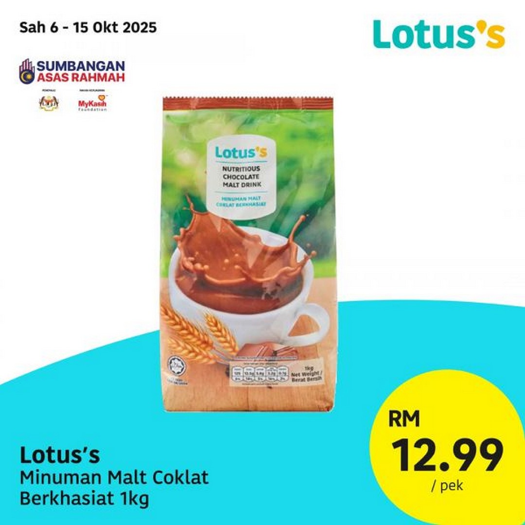 Lotus’s Nutritious Chocolate Malt Drink 1kg – RM12.99/pack, 6–15 October 2025, Lotus’s Malaysia