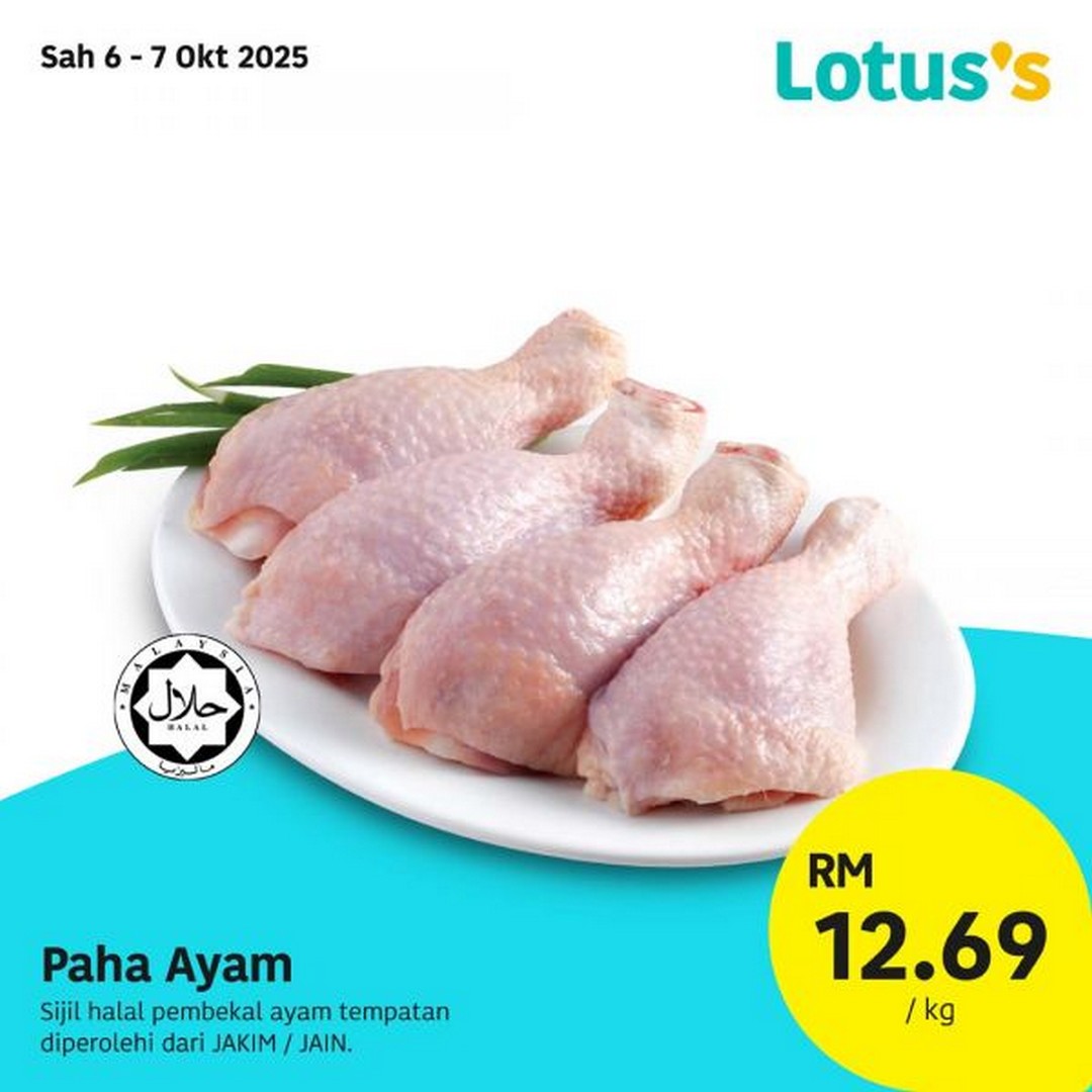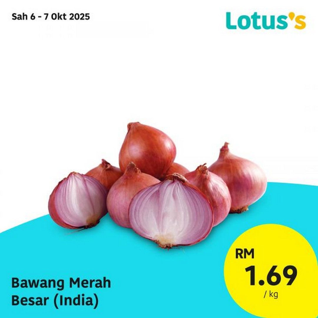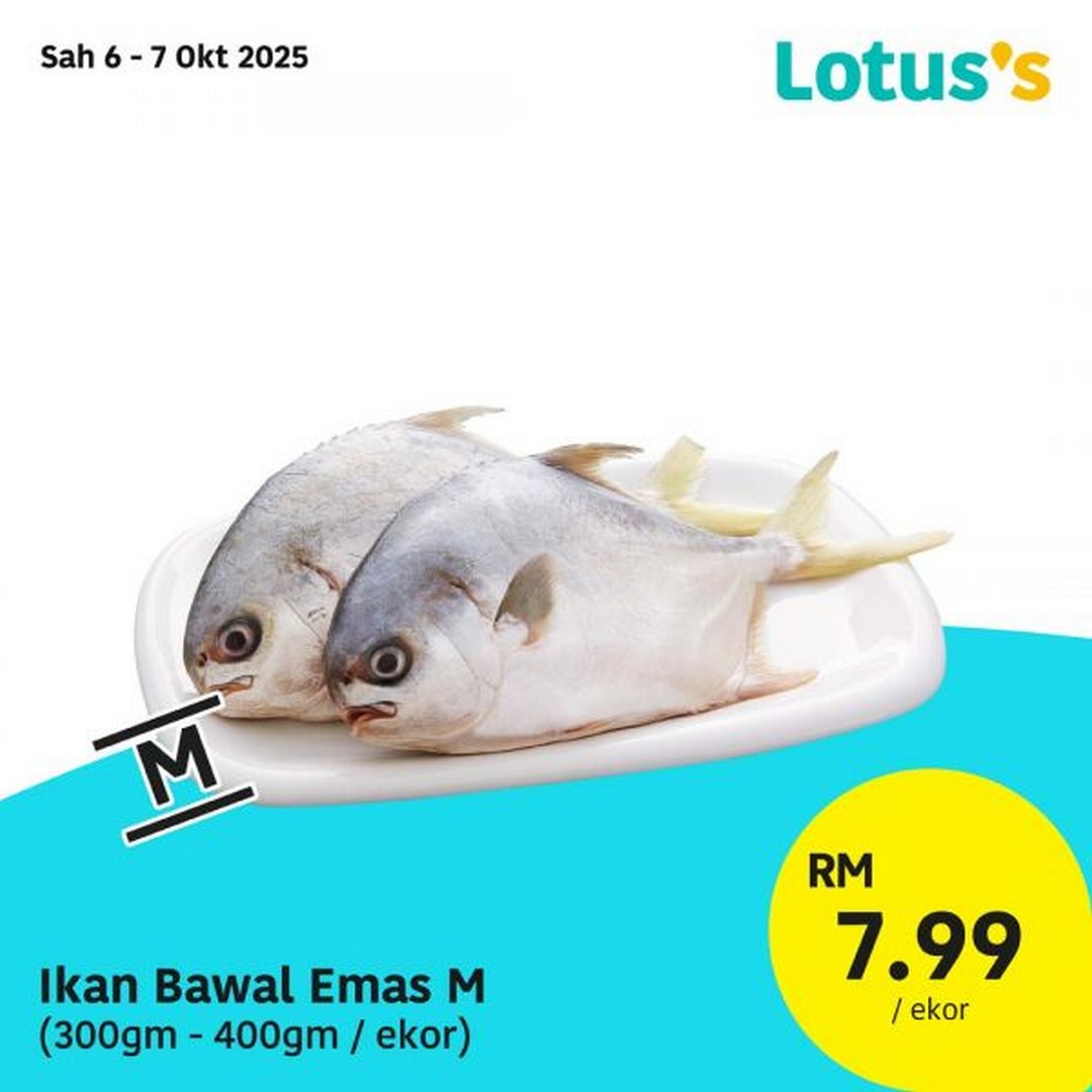 Seafood lovers can also rejoice, as Lotus’s is offering Udang Sederhana L (60–70 pieces/kg) at RM24.99 per kg, valid only on 6–7 October 2025. Fresh and juicy prawns like these are perfect for family dinners or festive gatherings, and this promotion makes it far more affordable to enjoy seafood at home.