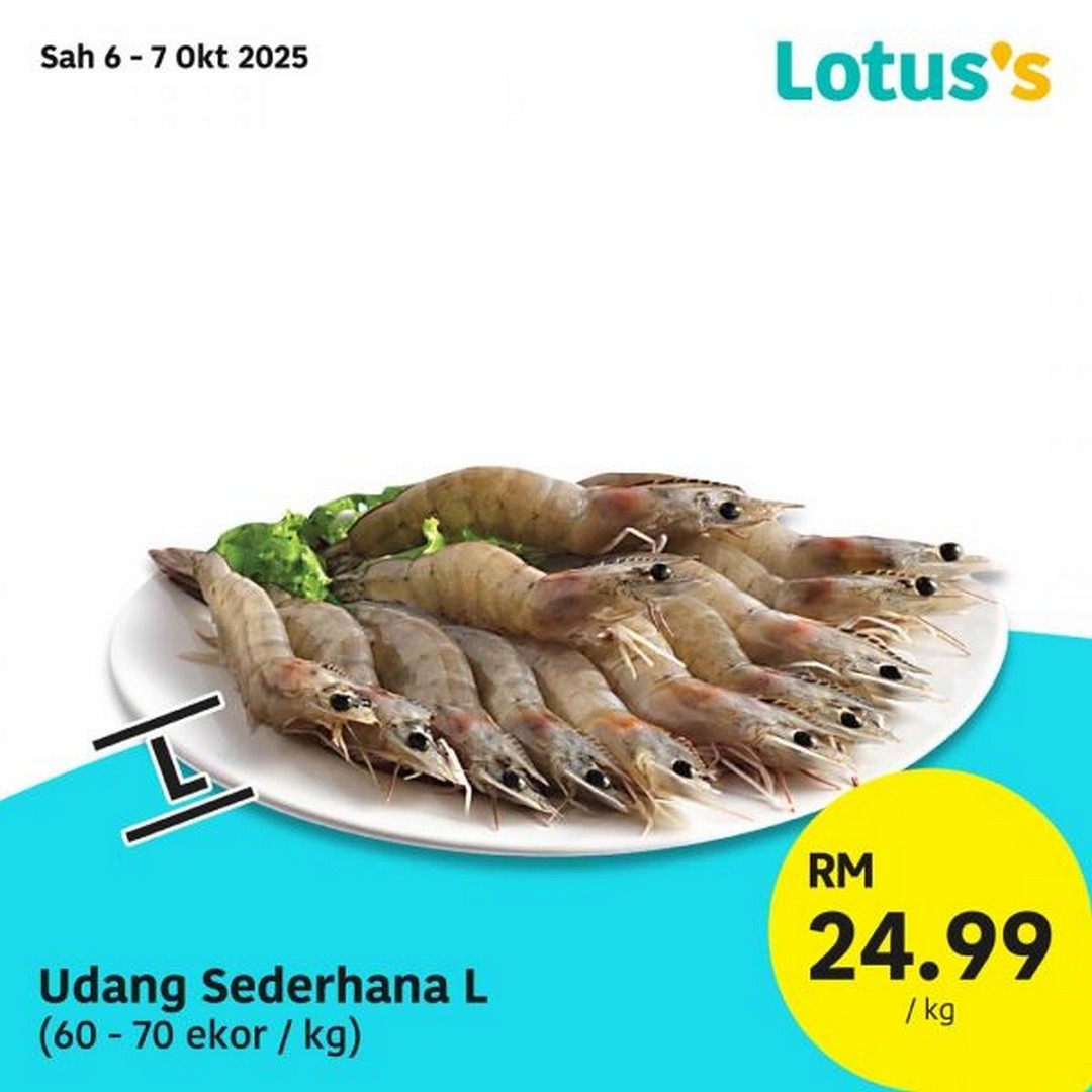 Udang Sederhana L (60–70 pieces/kg) – RM24.99/kg, 6–7 October 2025, Lotus’s Malaysia