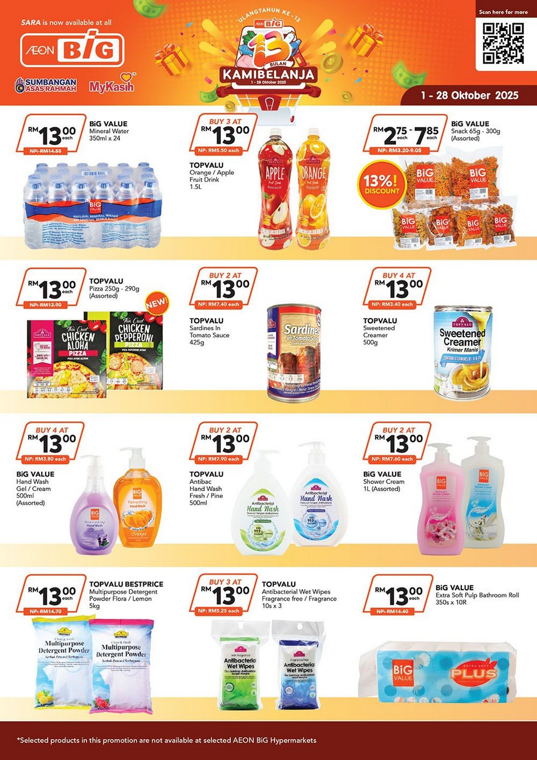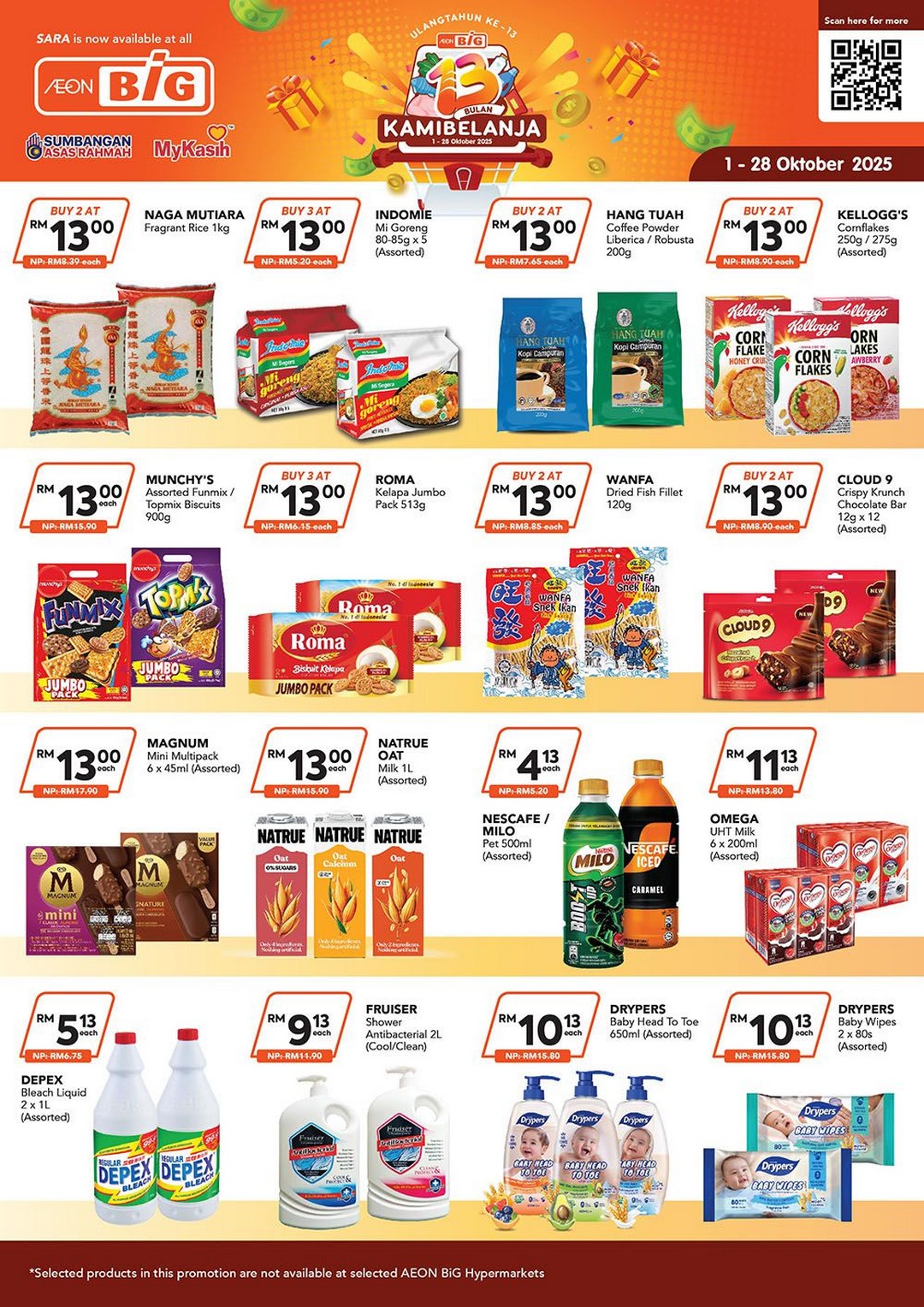 The AEON BiG 13th Anniversary Sale is designed to make every ringgit count. Shoppers can expect markdowns across a wide range of products — from fresh produce and groceries to household essentials, personal care items, and even electrical goods. With discounts available in nearly every section of the store, it is an excellent time to stock up before the year-end rush begins.