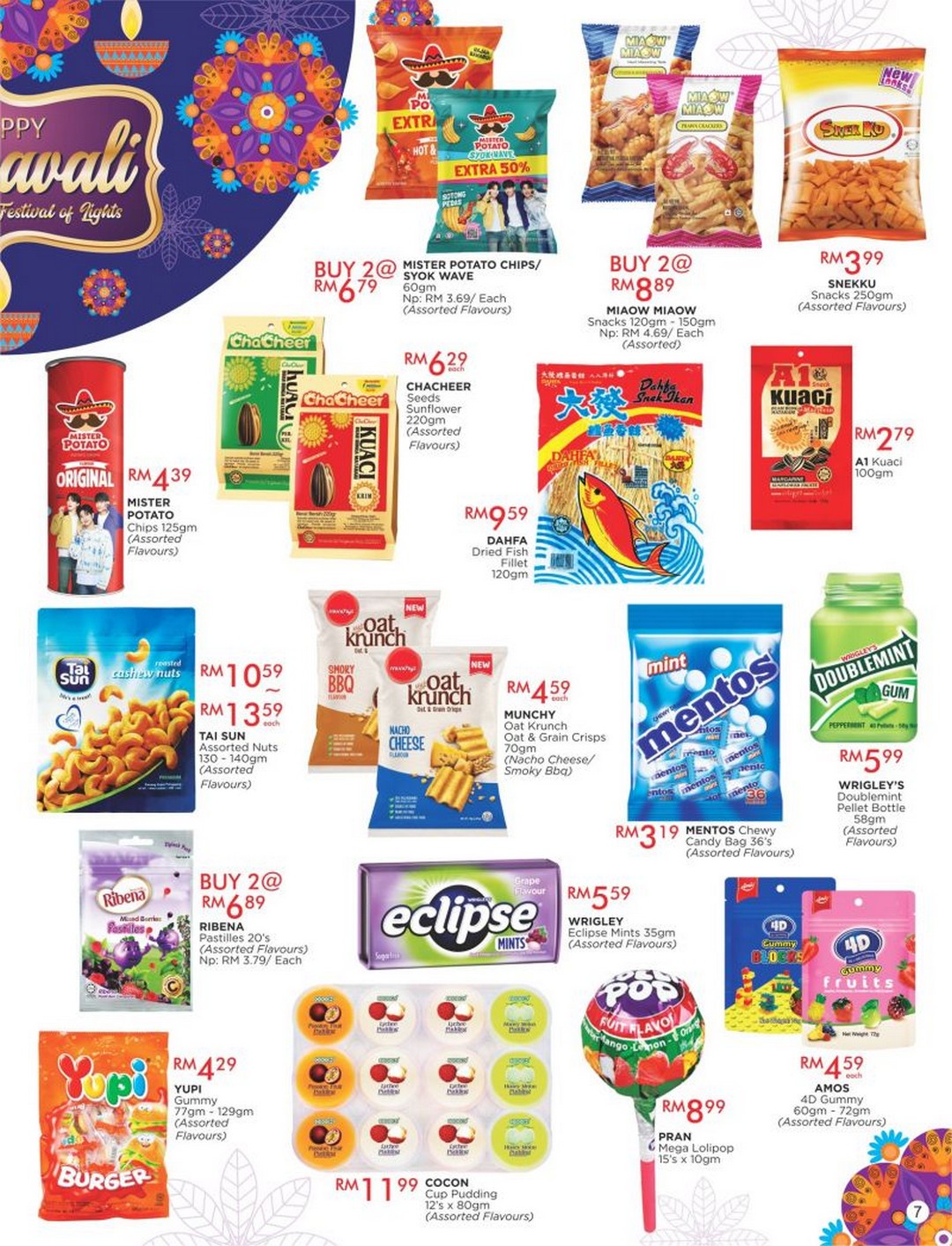 Snacks: Mister Potato, Miaow Miaow, Sneku, ChaCheer, Dahfa, and A1 Kuaci.