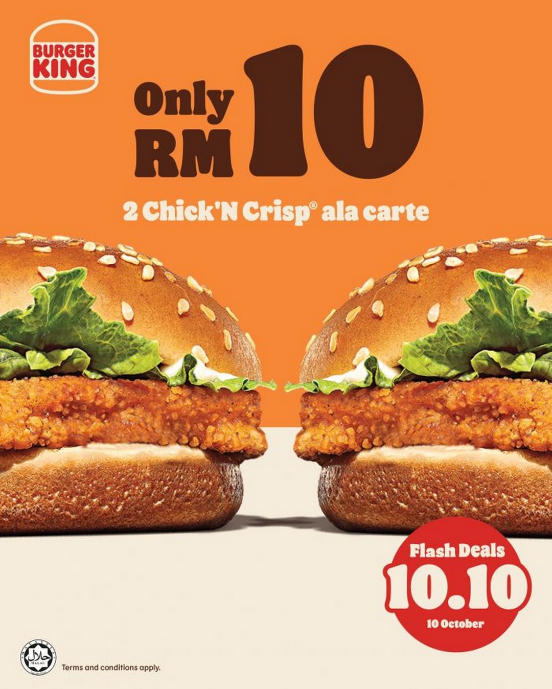 Burger King’s 10.10 Sale is more than just a promotion — it’s a day to enjoy simple pleasures. For RM10, you’re getting two crispy, satisfying burgers made with quality ingredients and served by a trusted brand. It’s the kind of deal that makes you smile, fills your stomach, and leaves you feeling that you’ve truly made the most out of your money.