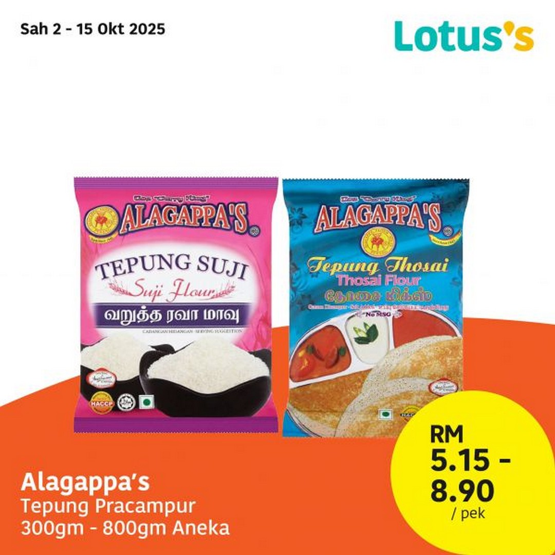 Alagappa’s Tepung Pracampur (300gm – 800gm, assorted) – RM5.15 – RM8.90 per pack (Valid 2–15 October 2025)