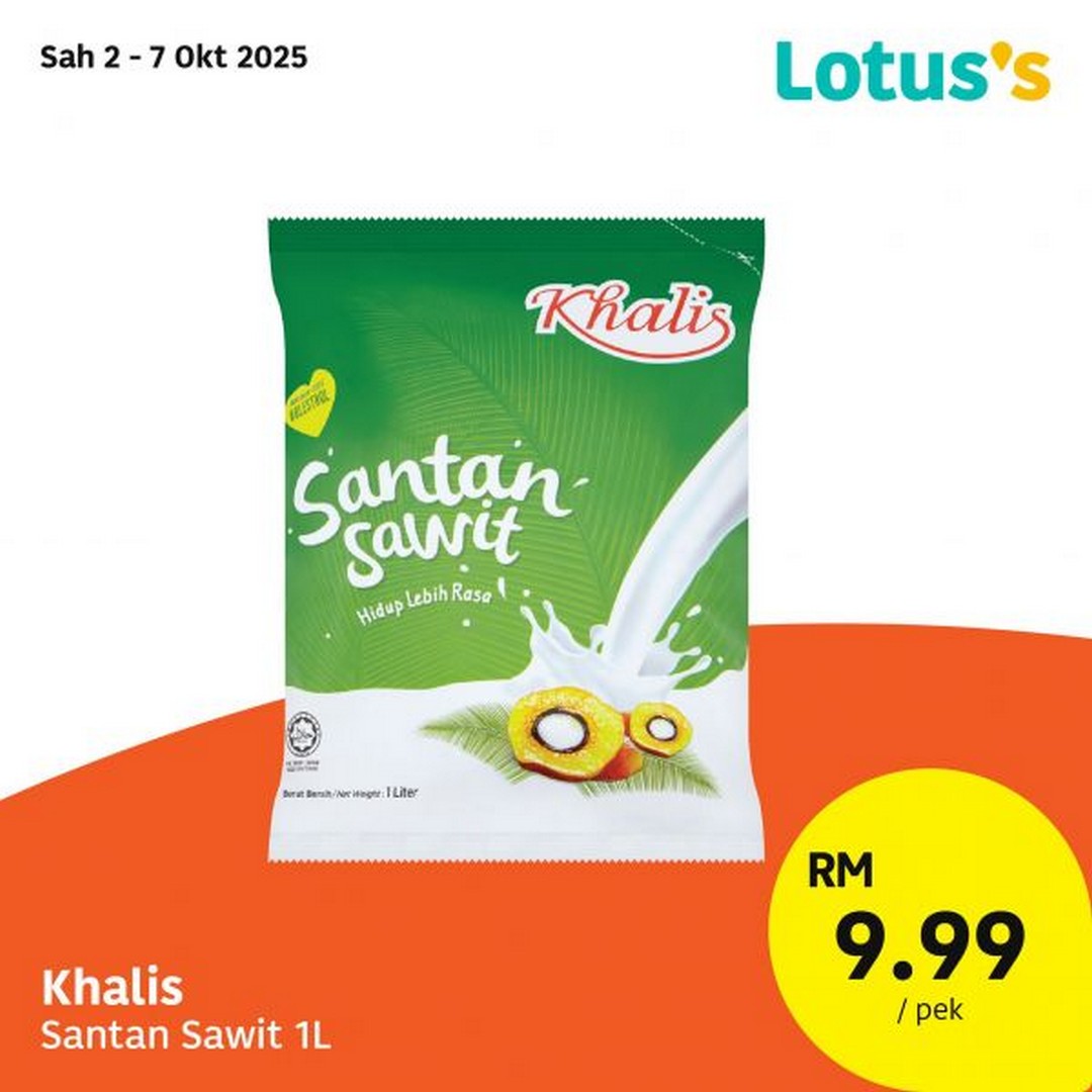Khalis Santan Sawit 1L – RM9.99 per pack (Valid 2–7 October 2025)