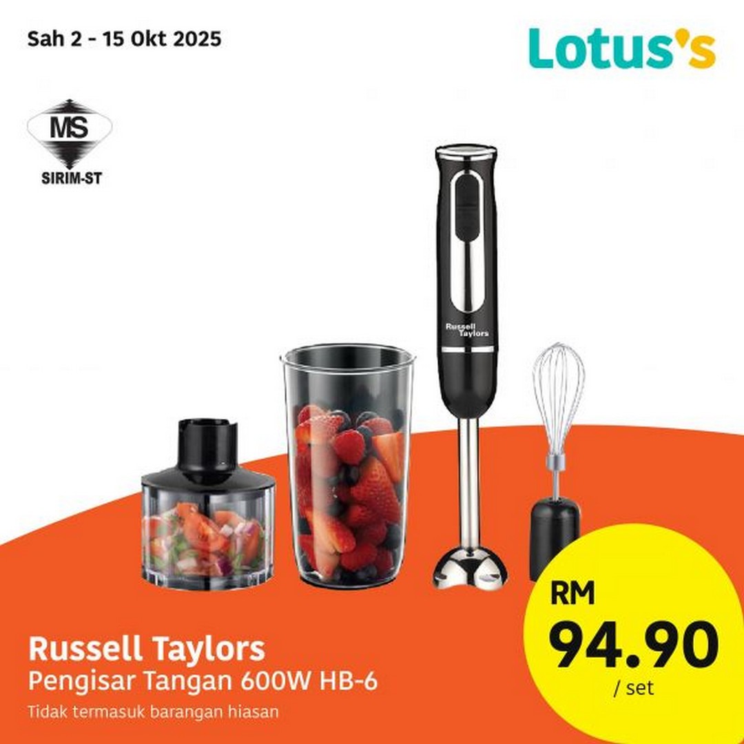 Russell Taylors Pengisar Tangan 600W HB-6 – RM94.90 per set (Valid 2–15 October 2025)