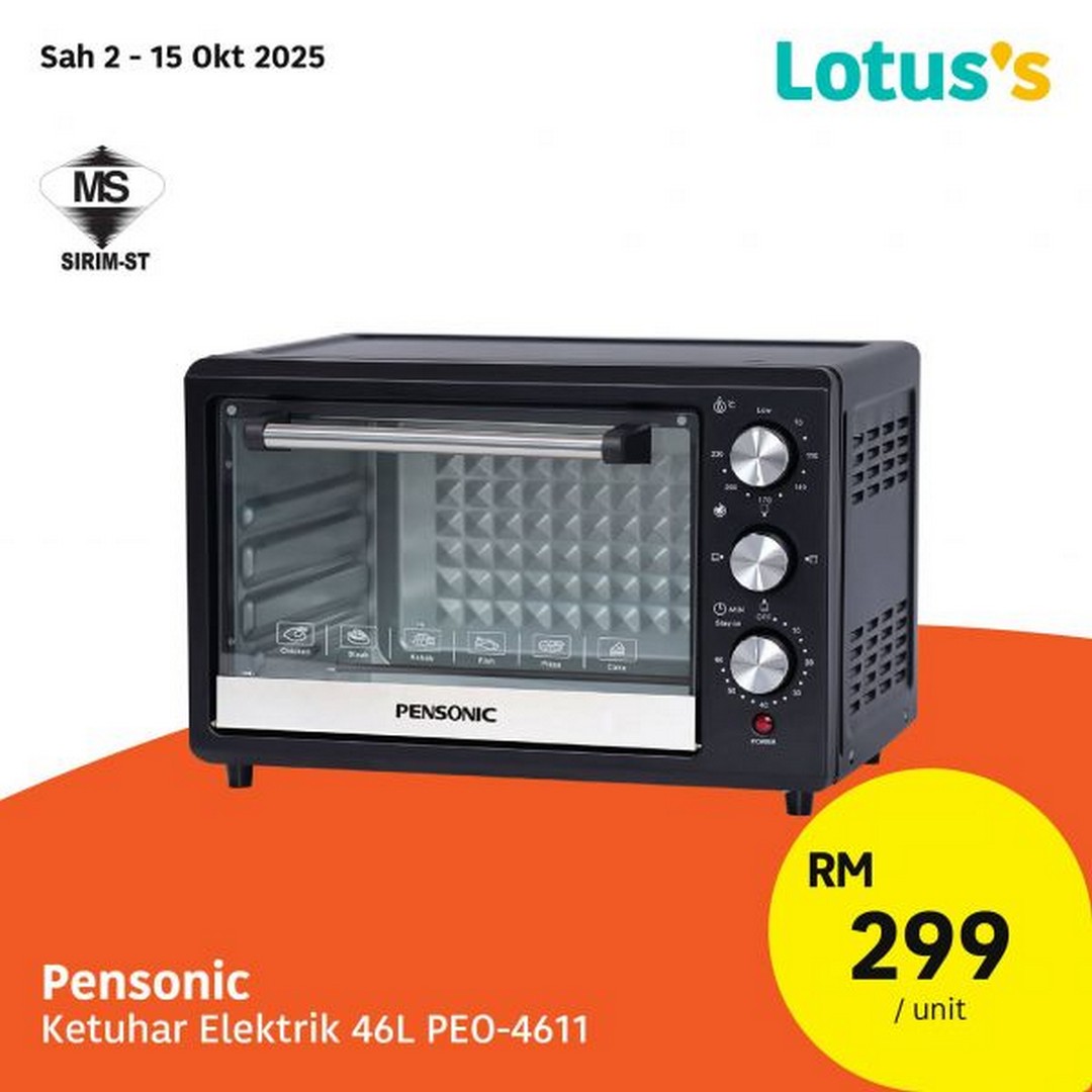 Pensonic Ketuhar Elektrik 46L PEO-4611 – RM299 per unit (Valid 2–15 October 2025)