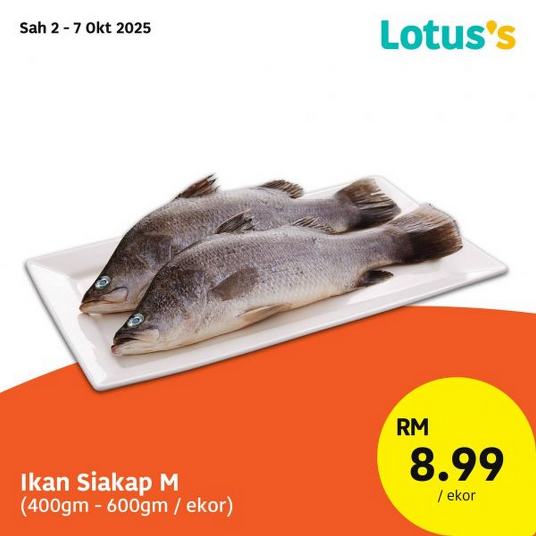 Ikan Siakap M (400gm – 600gm per fish) – RM8.99 each (Valid 2–7 October 2025)
