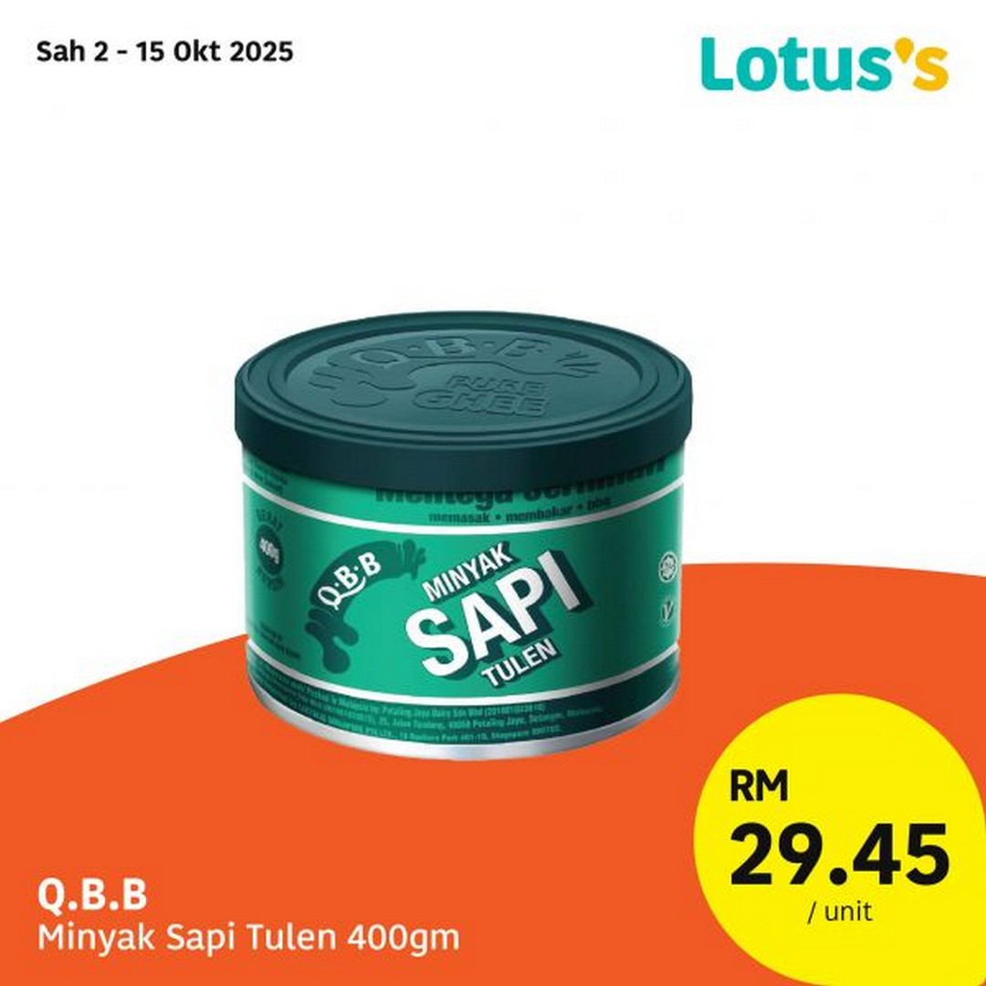 Q.B.B Minyak Sapi Tulen 400gm – RM29.45 per unit (Valid 2–15 October 2025)