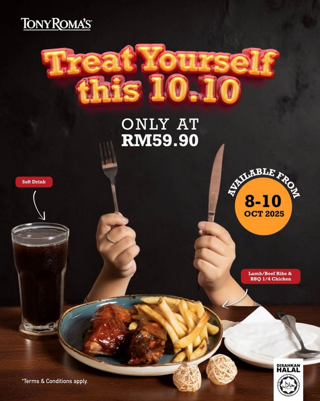 When 10 October rolls around, Malaysians know it’s time for one of the biggest shopping and dining events of the year – the much-anticipated 10.10 Sale. While most people think of online deals and flash discounts, this year Tony Roma’s Malaysia is giving food lovers a reason to celebrate in delicious style. From 8 to 10 October 2025, Tony Roma’s is offering a mouth-watering 10.10 promotion that brings together their signature ribs, juicy BBQ chicken, and refreshing drink – all for only RM59.90.