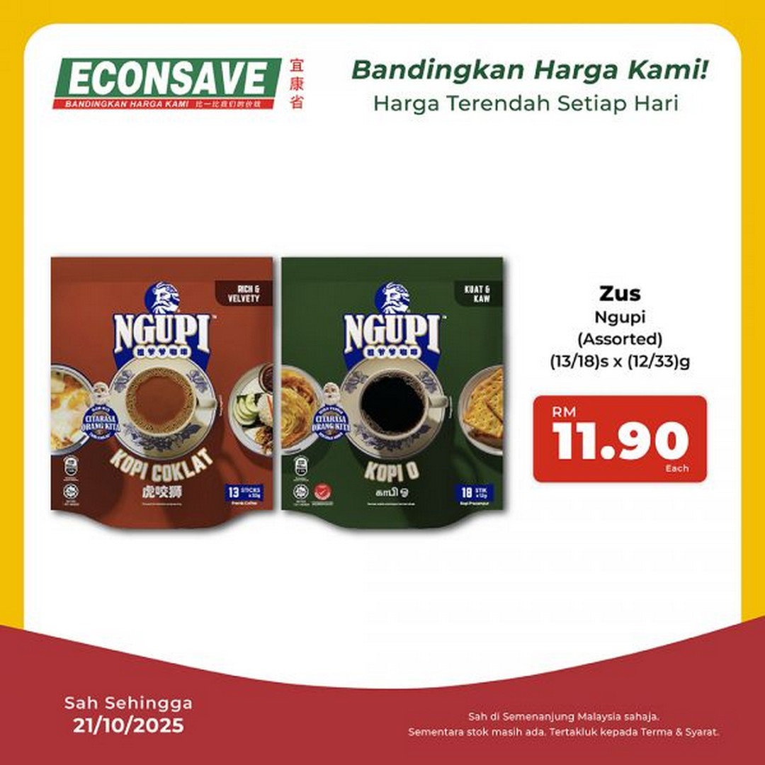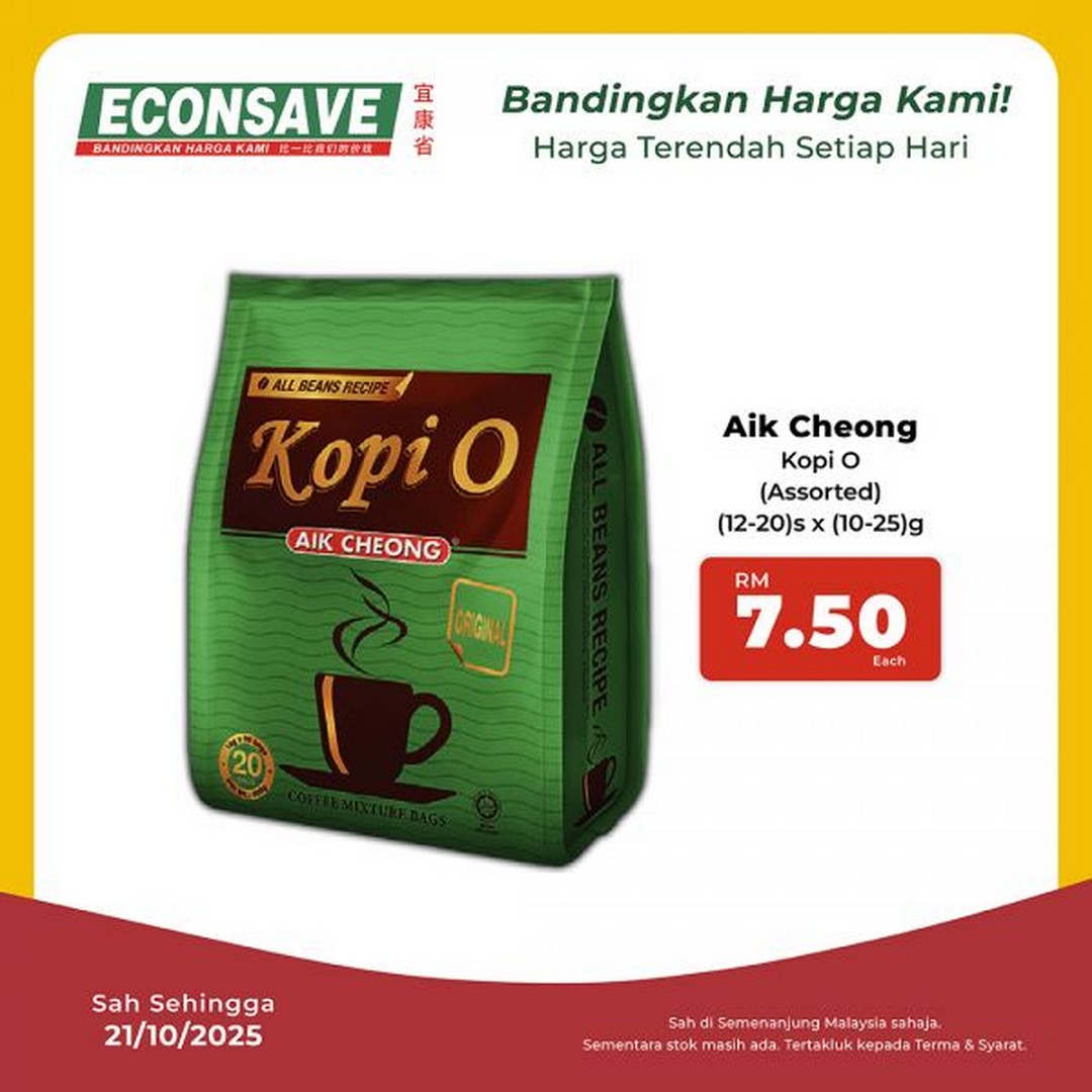 The beauty of the Econsave Coffee Promotion lies in its variety. There’s something for everyone: instant coffee mixes for a quick brew, traditional Kopi O for that strong, aromatic kick, and White Coffee for a creamy, comforting taste. By offering discounted prices on these well-loved brands, Econsave makes it easy for coffee lovers to enjoy their daily cup without stretching their wallet.