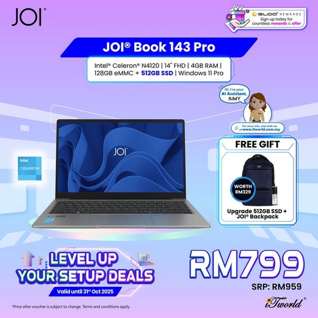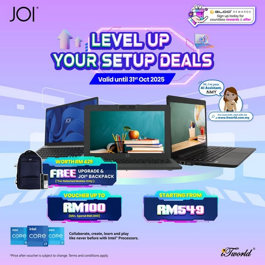 If you’ve been meaning to upgrade your tech setup, this might just be the perfect opportunity to do so. iTworld Malaysia is currently running its Level Up Your Setup Deals Promotion, featuring a fantastic range of JOI® laptops powered by Intel®, with prices starting from as low as RM549. Whether you’re a student, designer, gamer, or professional, this promotion has something designed to fit every kind of user and budget.