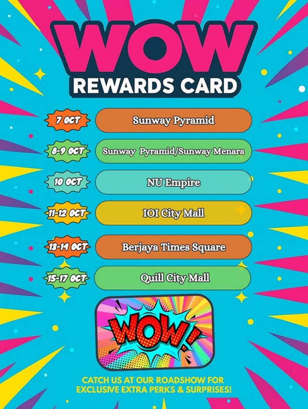 On 10 October, the WOW Roadshow moves to NU Empire, a mall known for its trendy crowd and vibrant shopping environment. Attendees can expect an energetic and fun-filled setup, making it more than just a promotional event—it’s an experience. The team has cleverly designed activities that appeal to all ages, creating opportunities for visitors to engage, take photos, and enjoy a memorable outing.