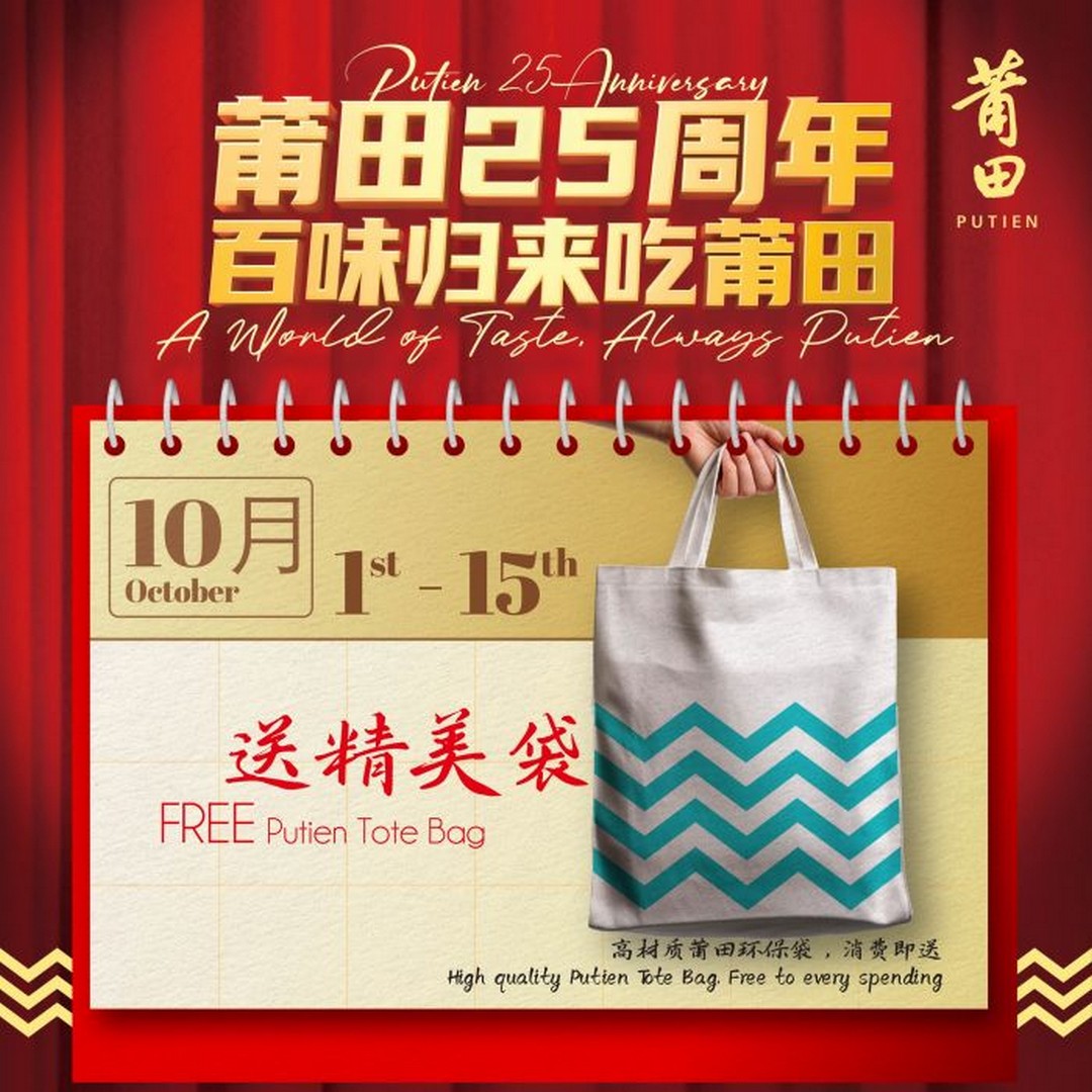 Putien’s 25th Anniversary promotion is not only a way for them to thank their loyal diners, but also an invitation for new customers to experience their acclaimed dishes. A free, premium tote bag makes a perfect incentive for anyone who enjoys practical gifts, environmentally conscious choices, or simply appreciates a memorable dining experience.