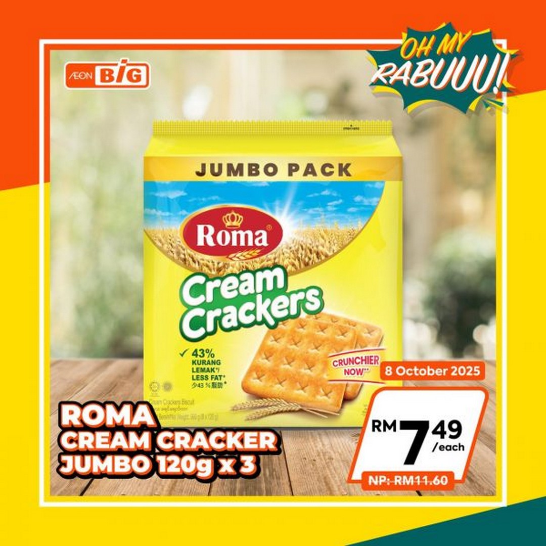 For biscuit lovers, the Roma Cream Cracker Jumbo Pack is a must-grab. Usually retailing at RM11.60, this pack of three is now just RM7.49 each. Perfect for tea-time snacking or lunchbox treats, this deal is bound to attract those who enjoy having pantry staples at an affordable price.